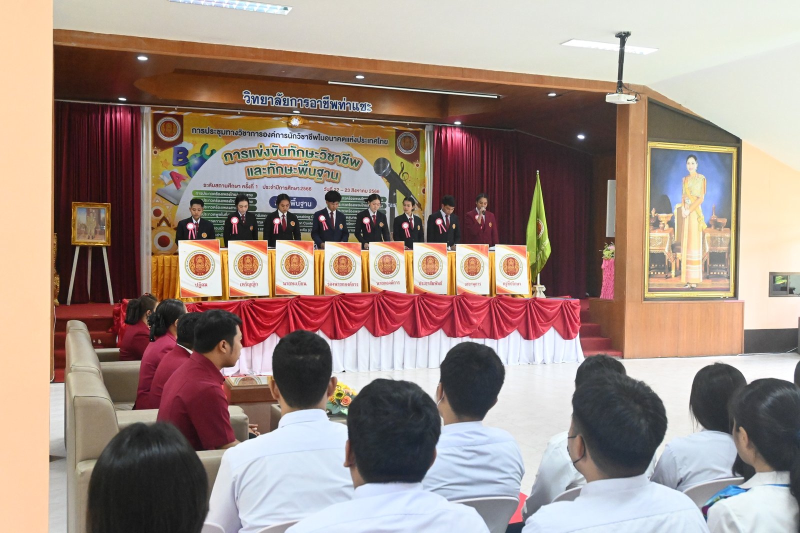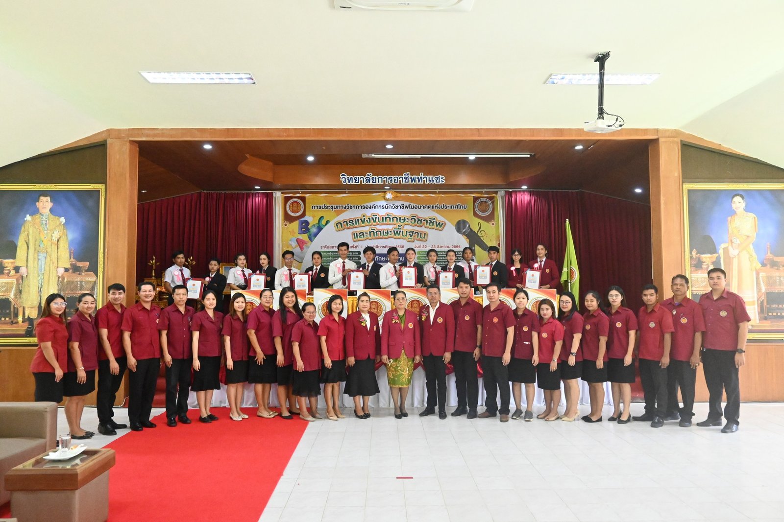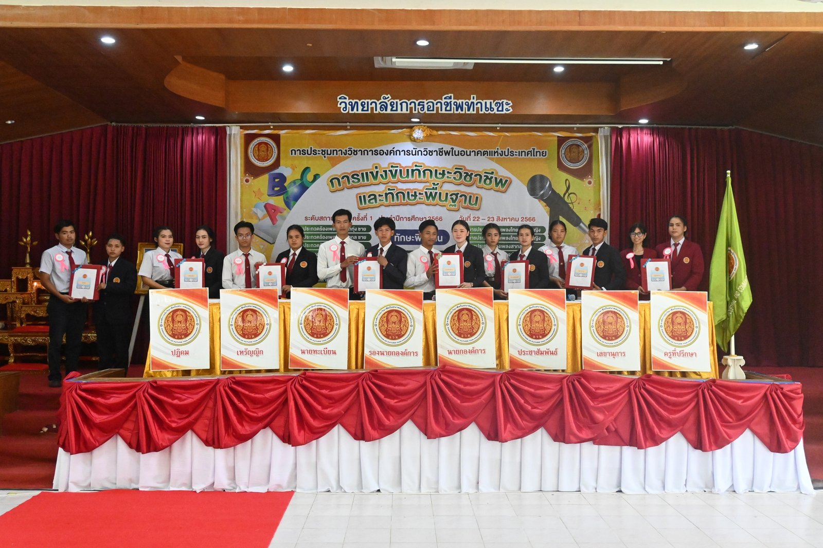 วันที่ 22 - 23 สิงหาคม 2566 นางบัณฑิตา ทวีเมือง ผู้อำนวยการวิทยาลัยการอาชีพท่าแซะ เป็นประธานในพิธีเปิดโครงการการประชุมทางวิชาการองค์การนักวิชาชีพในอนาคตแห่งประเทศไทย การแข่งขันทักษะวิชาชีพและการแข่งขันทักษะพื้นฐาน ระดับสถานศึกษาครั้งที่ 1 ปีการศึกษา2566 :: วิทยาลัยการอาชีพท่าแซะ