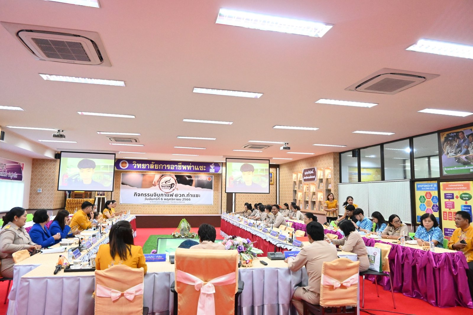 วันที่ 6 พฤศจิกายน 2566 นางบัณฑิตา ทวีเมือง ผู้อำนวยการวิทยาลัยการอาชีพท่าแซะ พร้อมด้วยคณะครู บุคลากรทางการศึกษาและนักเรียน นักศึกษา ดำเนินการจัดกิจกรรมจิบกาแฟ @วก.ท่าแซะ :: วิทยาลัยการอาชีพท่าแซะ