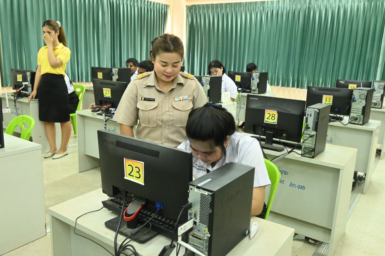 วันที่ 27-28 กุมภาพันธ์ 2567 นางบัณฑิตา ทวีเมือง ผู้อำนวยการวิทยาลัยการอาชีพท่าแซะ พร้อมด้วยนายเคน อ่อนเกตุพล ครู คศ.1 ทำหน้าที่รองผู้อำนวยการฝ่ายวิชาการ และนางสาววิราวัณย์ รัตนมุณี หัวหน้างานวัดและประเมินผล ร่วมให้กำลังและเข้าตรวจเยี่ยมการทดสอบ "มา :: วิทยาลัยการอาชีพท่าแซะ