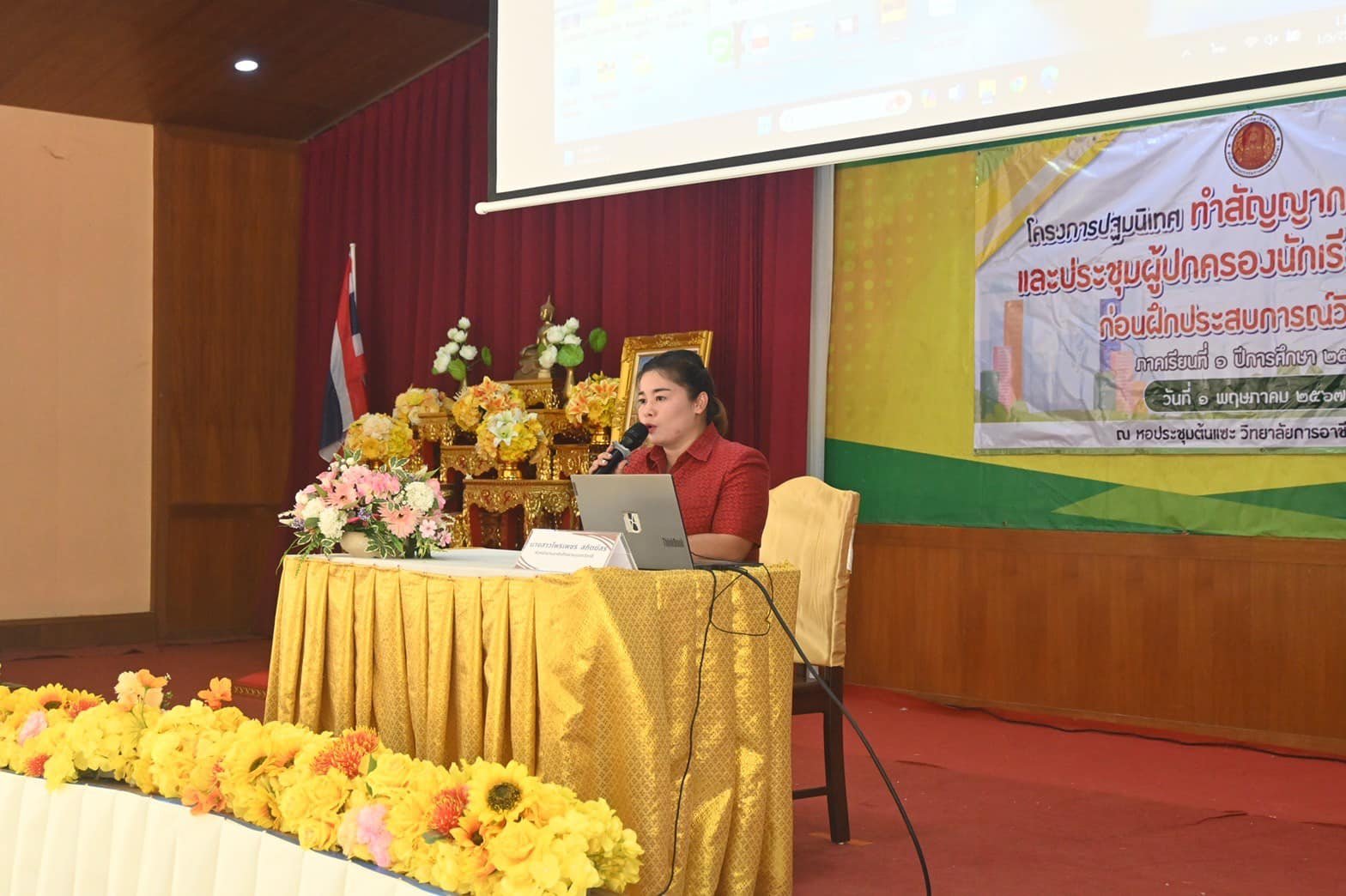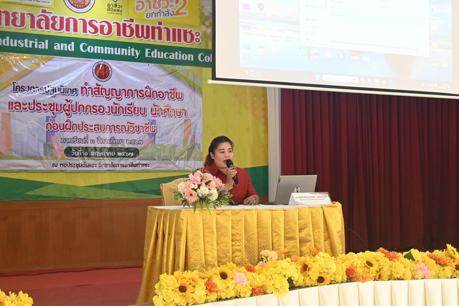 วันที่ 16 กันยายน 2568 นางบัณฑิตา ทวีเมือง ผู้อำนวยการวิทยาลัยการอาชีพท่าแซะ เป็นประธานกล่าวเปิดโครงการสัมมนานักเรียน นักศึกษากลับจากฝึกอาชีพร่วมกับสถานประกอบการภาคเรีย..