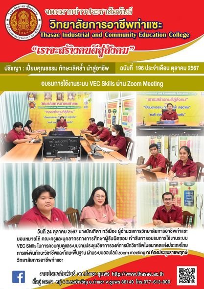วันที่ 17 พฤศจิกายน 2568 นายชนาธิวัฒน์ ซารัมย์ รองผู้อำนวยการฯ รักษาการในตำแหน่ง ผู้อำนวยการวิทยาลัยการอาชีพท่าแซะ มอบหมายให้นางไพรเพชร บานสุคนธ์ หัวหน้างานอาชีวศึกษา..