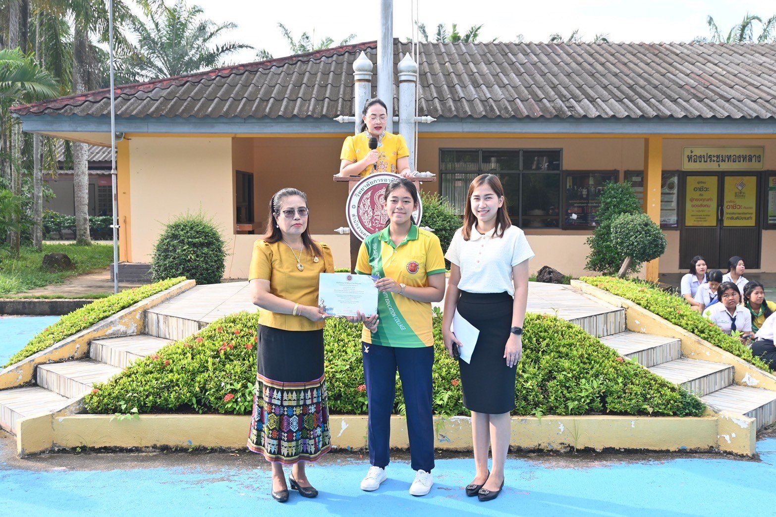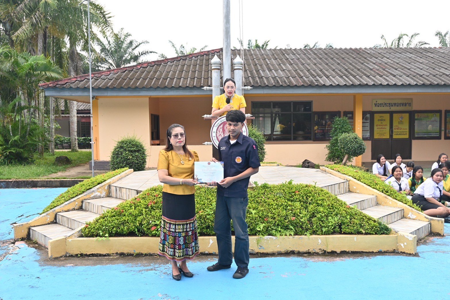 วันที่ 18 พฤศจิกายน 2567 นางบัณฑิตา ทวีเมือง ผู้อำนวยการวิทยาลัยการอาชีพท่าแซะ มอบเกียรติบัตรให้แก่นักเรียน นักศึกษา และครูผู้ควบคุม ที่ได้รับรางวัลในการแข่งขันทักษะวิชาชีพและทักษะพื้นฐาน ระดับอาชีวศึกษาจังหวัดชุมพร ประจำปีการศึกษา 2567 ณ ลานกิจกรรมหน้าเ :: วิทยาลัยการอาชีพท่าแซะ