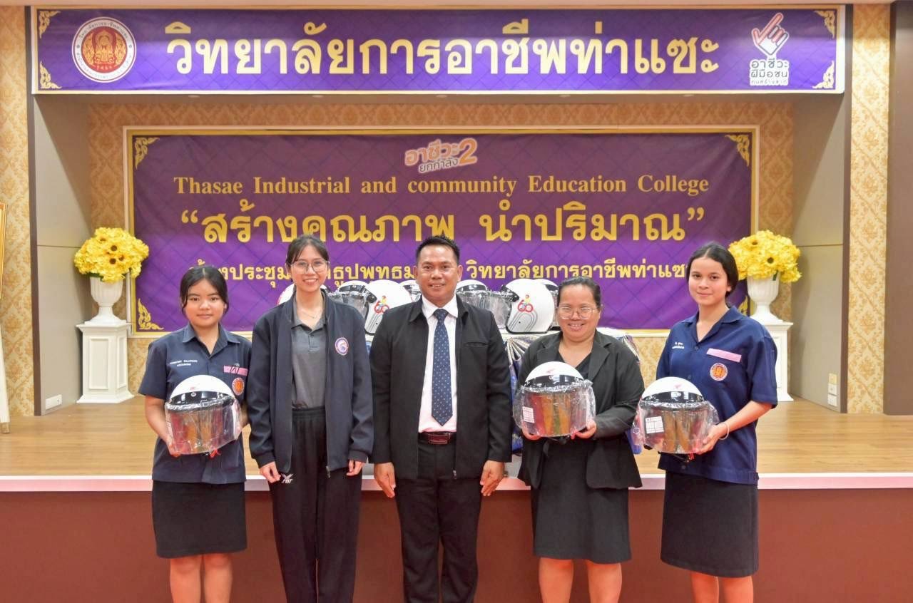 วันที่ 7 พฤศจิกายน 2568 นายชนาธิวัฒน์ ซารัมย์ รองผู้อำนวยการฯ รักษาการในตำแหน่ง ผู้อำนวยการวิทยาลัยการอาชีพท่าแซะ มอบเกียรติบัตรให้แก่นักเรียน นักศึกษาที่ได้รับรางวัลชนะเลิศ , รางวัลรองชนะเลิศอันดับ 1 และรางวัลรองชนะเลิศอันดับ 2 ในการประกวดกระทงป :: วิทยาลัยการอาชีพท่าแซะ