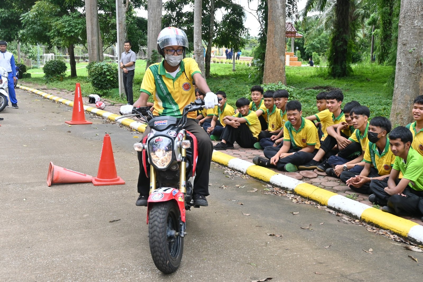 วันที่ 30 สิงหาคม 2566 นางบัณฑิตา ทวีเมือง ผู้อำนวยการวิทยาลัยการอาชีพท่าแซะ พร้อมด้วยคณะผู้บริหาร ครู บุคลากรทางการศึกษา นักเรียน นักศึกษา เข้าร่วมโครงการอบรมขับขี่ปลอดภัยสร้างวินัยจราจรในสถานศึกษา รุ่นที่ 2 ประจำปีการศึกษา 2566 :: วิทยาลัยการอาชีพท่าแซะ