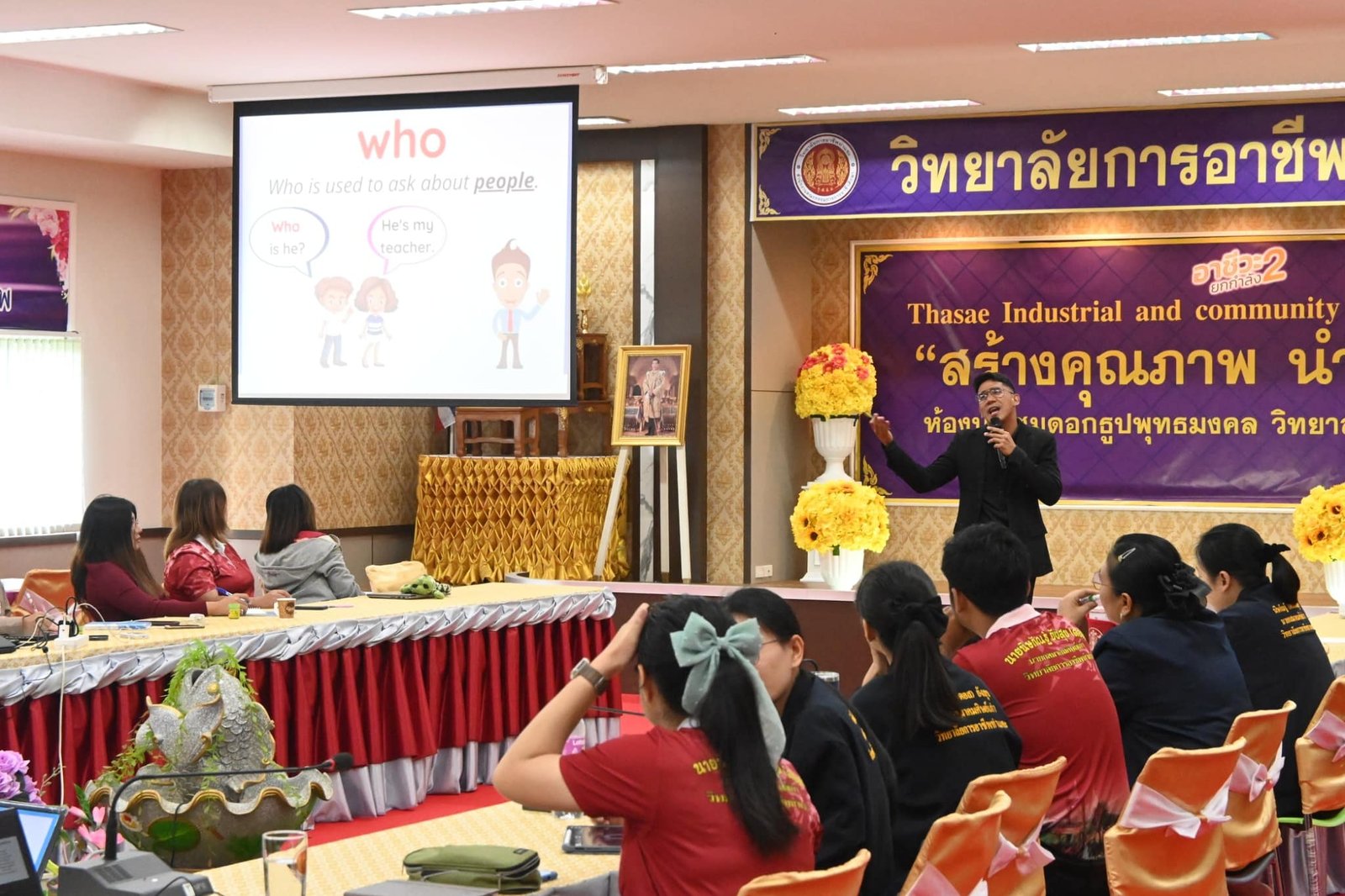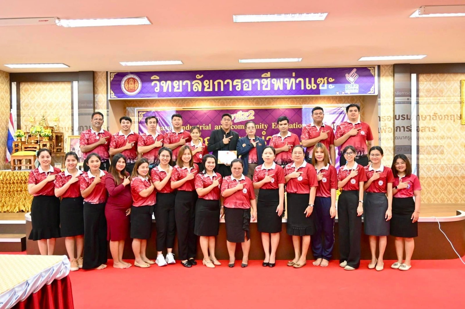 วันที่ 27 มีนาคม 2567 นางบัณฑิตา ทวีเมือง ผู้อำนวยการวิทยาลัยการอาชีพท่าแซะ พร้อมด้วยคณะครู เข้าร่วมอบรมภาษาอังกฤษเพื่อการสื่อสาร ภายใต้โครงการพัฒนาครูและบุคลากรอาชีวศึกษา ประจำปีงบประมาณ 2567 โดยได้รับเกียรติจาก Mr.Jomar Holifena Montanez วิทยากร ณ ห้อ :: วิทยาลัยการอาชีพท่าแซะ