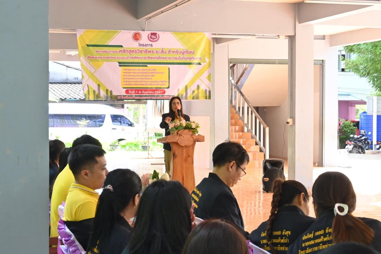 วันที่ 7 กันยายน 2567 นางบัณฑิตา ทวีเมือง ผู้อำนวยการวิทยาลัยการอาชีพท่าแซะ พร้อมด้วยคณะผู้บริหาร คณะครูและบุคลากรทางการศึกษา ดำเนินโครงการจัดการเรียนการสอนหลักสูตรวิชาชีพระยะสั้น สำหรับผู้เรียน เพื่อสนองพระราชดำริและพัฒนาอาชีพแก่เด็กและเยาวชนในถิ่นทุรกัน :: วิทยาลัยการอาชีพท่าแซะ