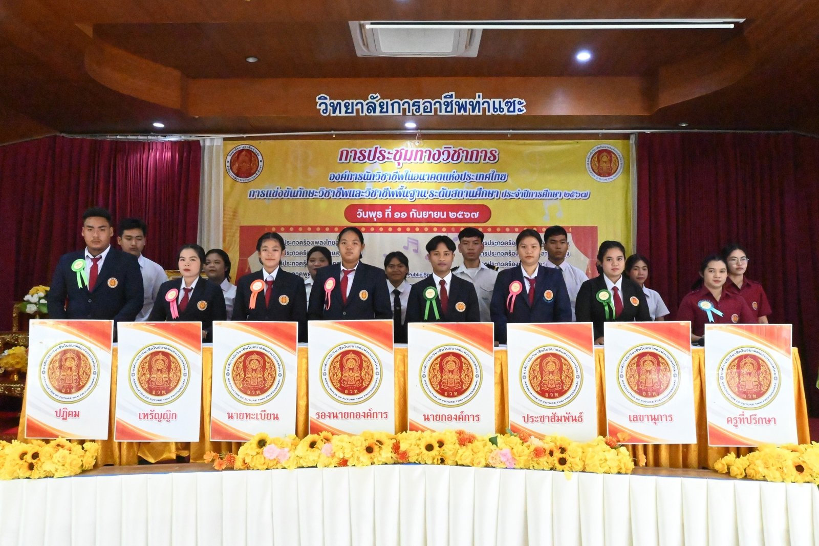 วันที่ 11 กันยายน 2567 นางบัณฑิตา ทวีเมือง ผู้อำนวยการวิทยาลัยการอาชีพท่าแซะ เป็นประธานในพิธีเปิดโครงการการประชุมทางวิชาการองค์การนักวิชาชีพในอนาคตแห่งประเทศไทย การแข่งขันทักษะวิชาชีพและการแข่งขันทักษะพื้นฐาน ระดับสถานศึกษาครั้งที่ 1 ประจำปีการศึกษา 2567 :: วิทยาลัยการอาชีพท่าแซะ