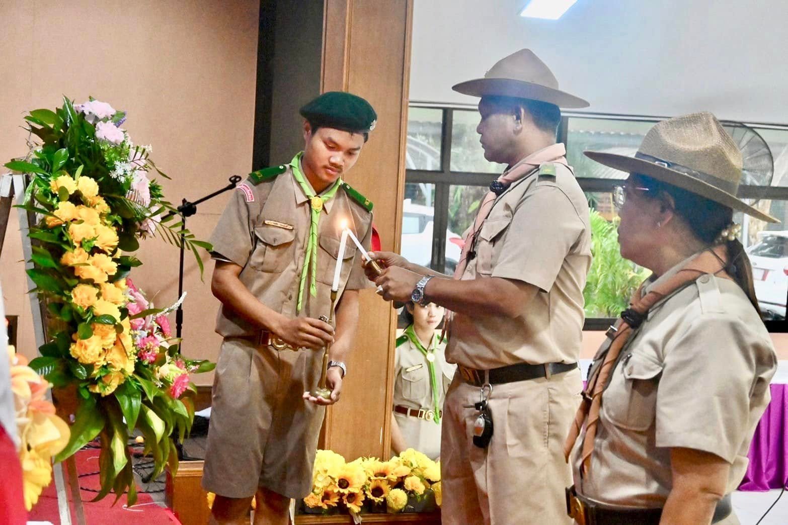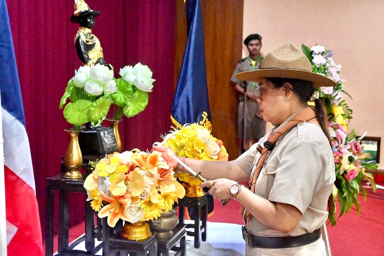 วันที่ 25 พฤศจิกายน 2567 นางบัณฑิตา ทวีเมือง ผู้อำนวยการลูกเสือวิทยาลัยการอาชีพท่าแซะ พร้อมด้วยคณะผู้กำกับลูกเสือ และกองลูกเสือวิทยาลัยการอาชีพท่าแซะ เข้าร่วมพิธีวางพวงมาลาและถวายราชสดุดี เนื่องในวันสมเด็จพระมหาธีรราชเจ้า ประจำปี 2567 และร่วมกิจกรรมบำเพ็ :: วิทยาลัยการอาชีพท่าแซะ