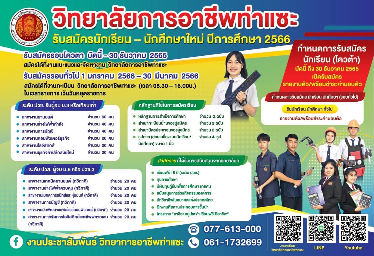 ใครกำลังมองหาที่เรียน วิทยาลัยการอาชีพท่าแซะ ✨เปิดรับสมัคร นร.นศ.ใหม่ ปี68 โค้งสุดท้าย❗️❗️