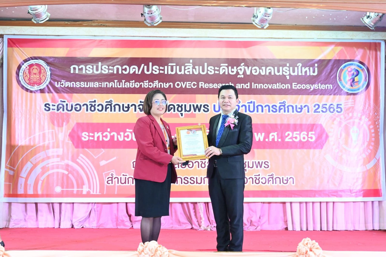 วันที่ 27 ธันวาคม 2565 ดร.นิรุตต์ บุตรแสงลี ผู้อำนวยการสำนักวิจัย และพัฒนาการอาชีวศึกษา เป็นประธานกล่าวเปิดการประกวด/ประเมินสิ่งประดิษฐ์ของคนรุ่นใหม่ ระดับอาชีวศึกษาจังหวัดชุมพร ประจําปีการศึกษา 2565 วันที่ 26 – 27 ธันวาคม พ.ศ. 2565 โดยมีนายณรงค์ แก้วสิงค :: วิทยาลัยการอาชีพท่าแซะ