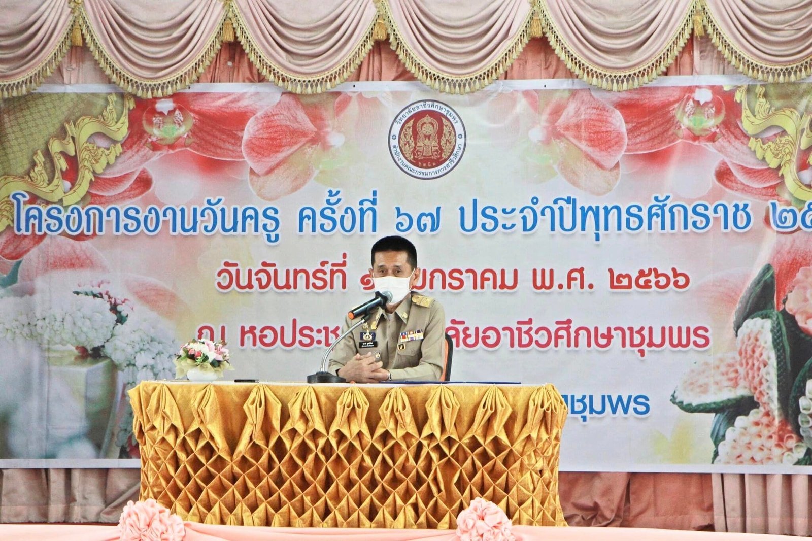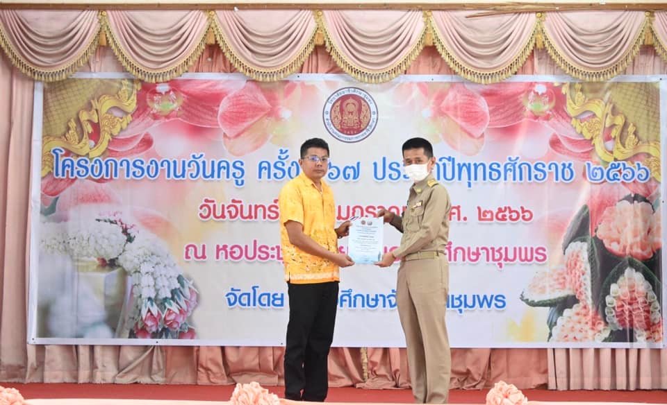 วันที่ 16 มกราคม 2566 นางบัณฑิตา ทวีเมือง ผู้อำนวยการวิทยาลัยการอาชีพท่าแซะ พร้อมด้วยนายกิตติศักดิ์ ทรหด รองผู้อำนวยการฯ และคณะครู เข้าร่วมพิธีบูชาบูรพาจารย์เนื่องในกิจกรรมวันครู ครั้งที่ 67 พ.ศ. 2566 โดยมีนายวิสาห์ พูลศิริรัตน์ ผู้ว่าราชการจังหวัดชุมพร ป :: วิทยาลัยการอาชีพท่าแซะ