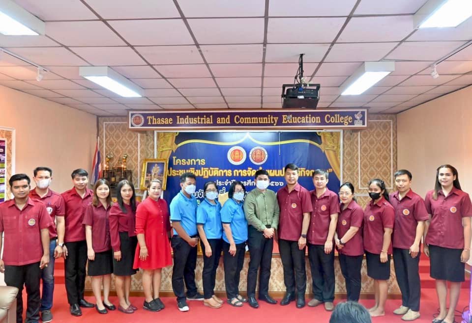 วันที่ 5 มิถุนายน 2566 นางบัณฑิตา ทวีเมือง ผู้อำนวยการวิทยาลัยการอาชีพท่าแซะ มอบหมายให้ นายเคน อ่อนเกตุพล ครู คศ.1 ทำหน้าที่รองผู้อำนวยการฝ่ายพัฒนากิจการนักเรียน นักศึกษา เป็นประธานเปิดโครงการ “ประชุมเชิงปฏิบัติการ การจัดทำแผนปฏิบัติกิจกรรม ประจำปีการศึก :: วิทยาลัยการอาชีพท่าแซะ