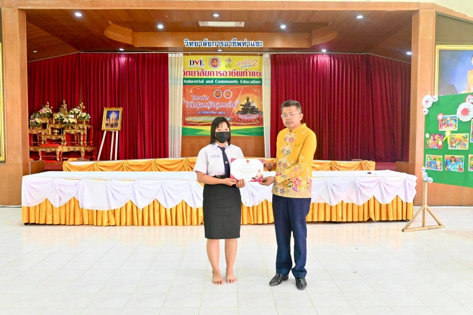 วันที่ 24 ธันวาคม 2568 นายชนาธิวัฒน์ ซารัมย์ รองผู้อำนวยการฯ รักษาการในตำแหน่ง ผู้อำนวยการวิทยาลัยการอาชีพท่าแซะ มอบเกียรติบัตรให้แก่นางสาววิภาวี - นักเรียนร..