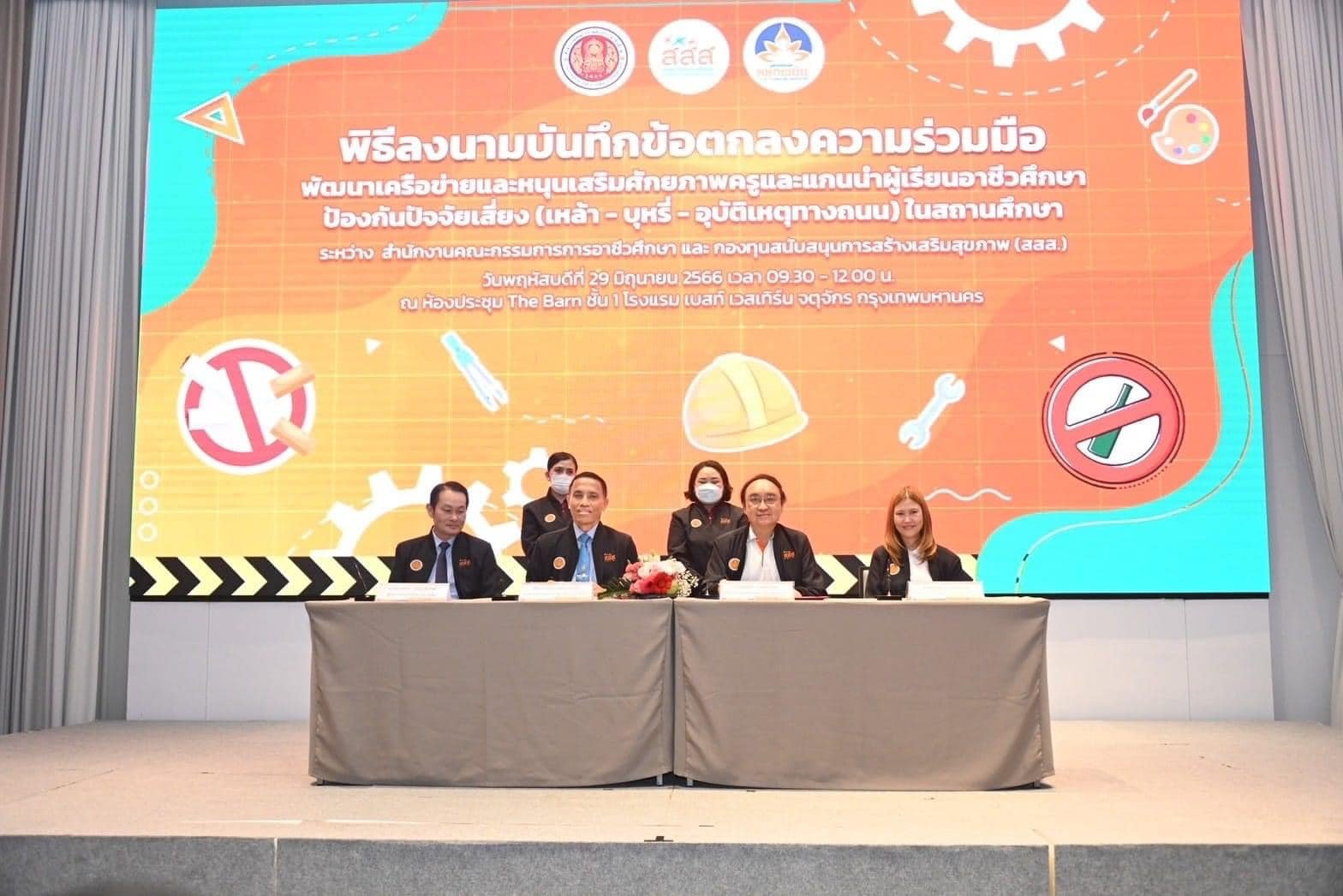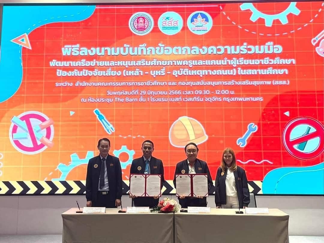 วันที่ 29 มิถุนายน 2566 นางบัณฑิตา ทวีเมือง ผู้อำนวยการวิทยาลัยการอาชีพท่าแซะ เข้าร่วมพิธีลงนามความร่วมมือพัฒนาเครือข่ายและหนุนเสริมศักยภาพครูและแกนนำผู้เรียนอาชีวศึกษา ป้องกันปัจจัยเสี่ยง (เหล้า - บุหรี่ - อุบัติเหตุทางถนน ) ในสถานศึกษา ระหว่างสำนักงานคณ :: วิทยาลัยการอาชีพท่าแซะ