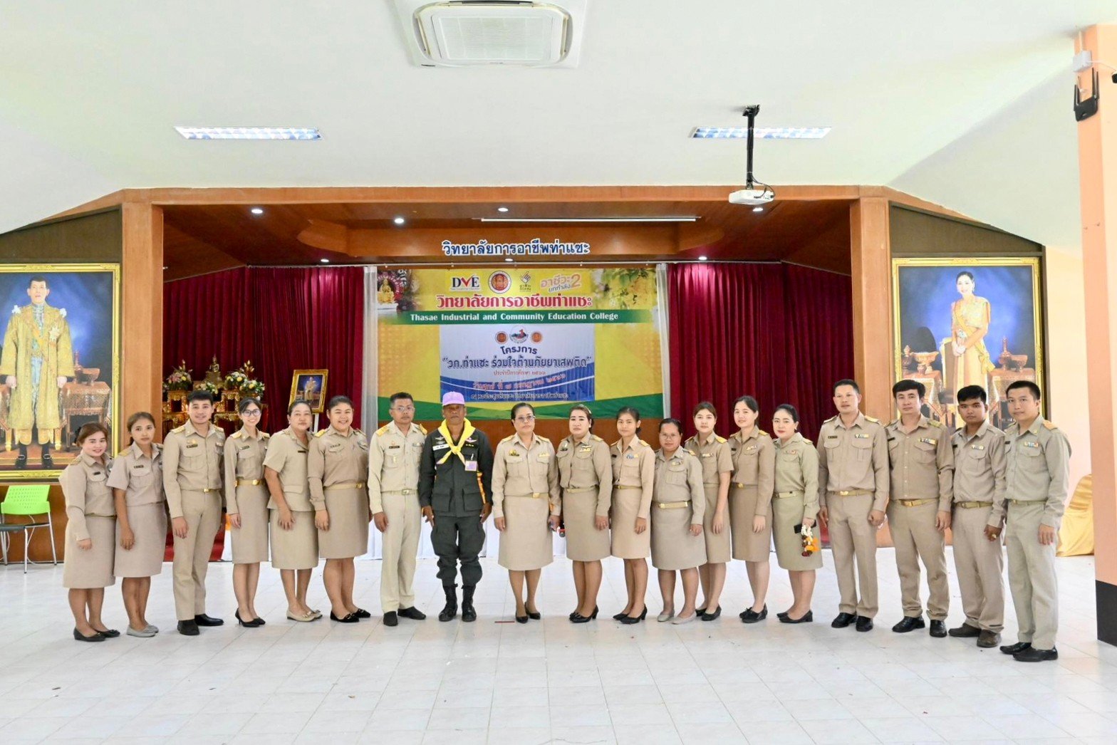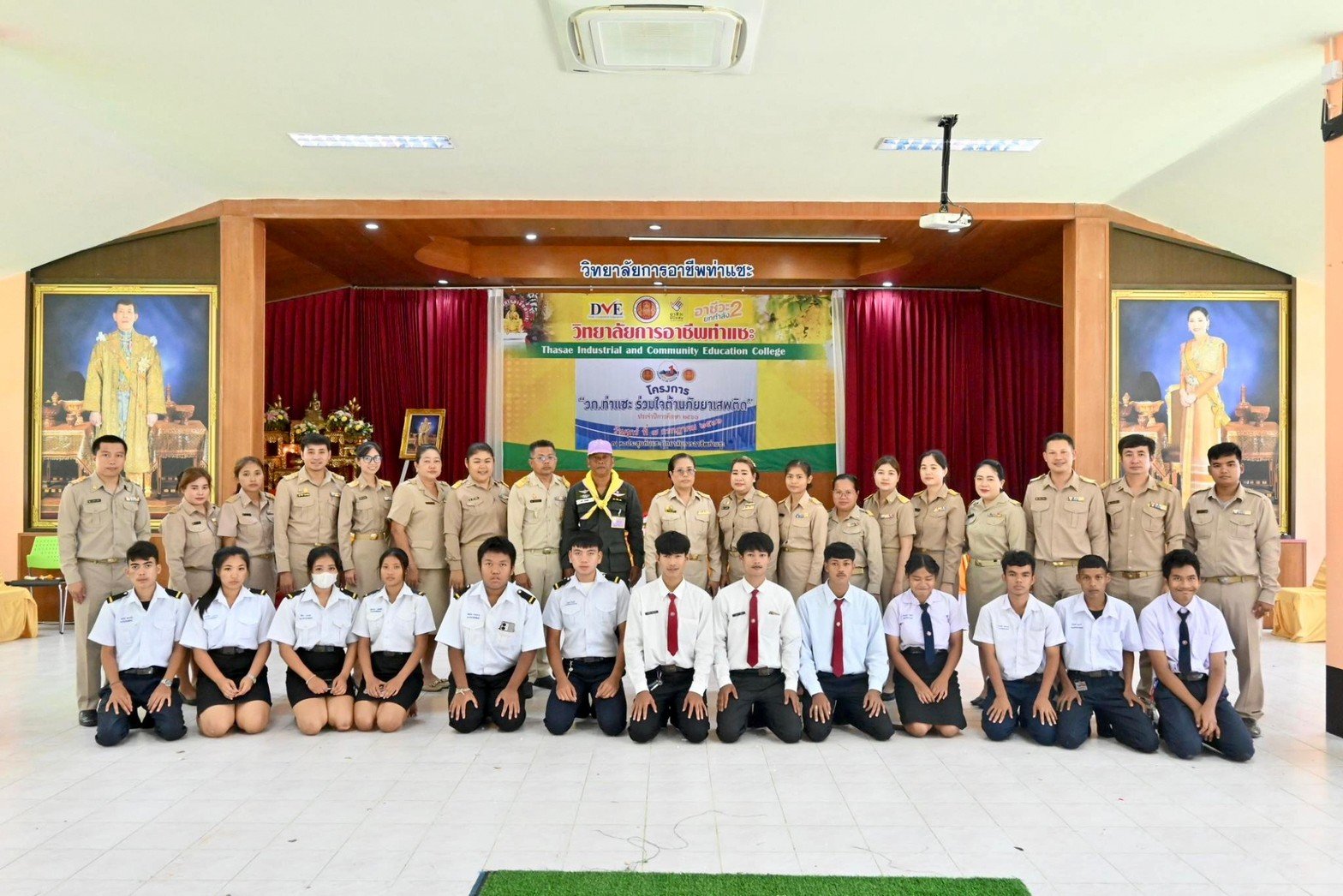 นางบัณฑิตา ทวีเมือง ผู้อำนวยการวิทยาลัยการอาชีพท่าแซะ พร้อมด้วยนายกิตติศักดิ์ ทรหด รองผู้อำนวยการฯ คณะครู บุคลากรทางการศึกษา และนักเรียน นักศึกษา เข้าร่วมโครงการร่วมใจต้านภัยยาเสพติด :: วิทยาลัยการอาชีพท่าแซะ