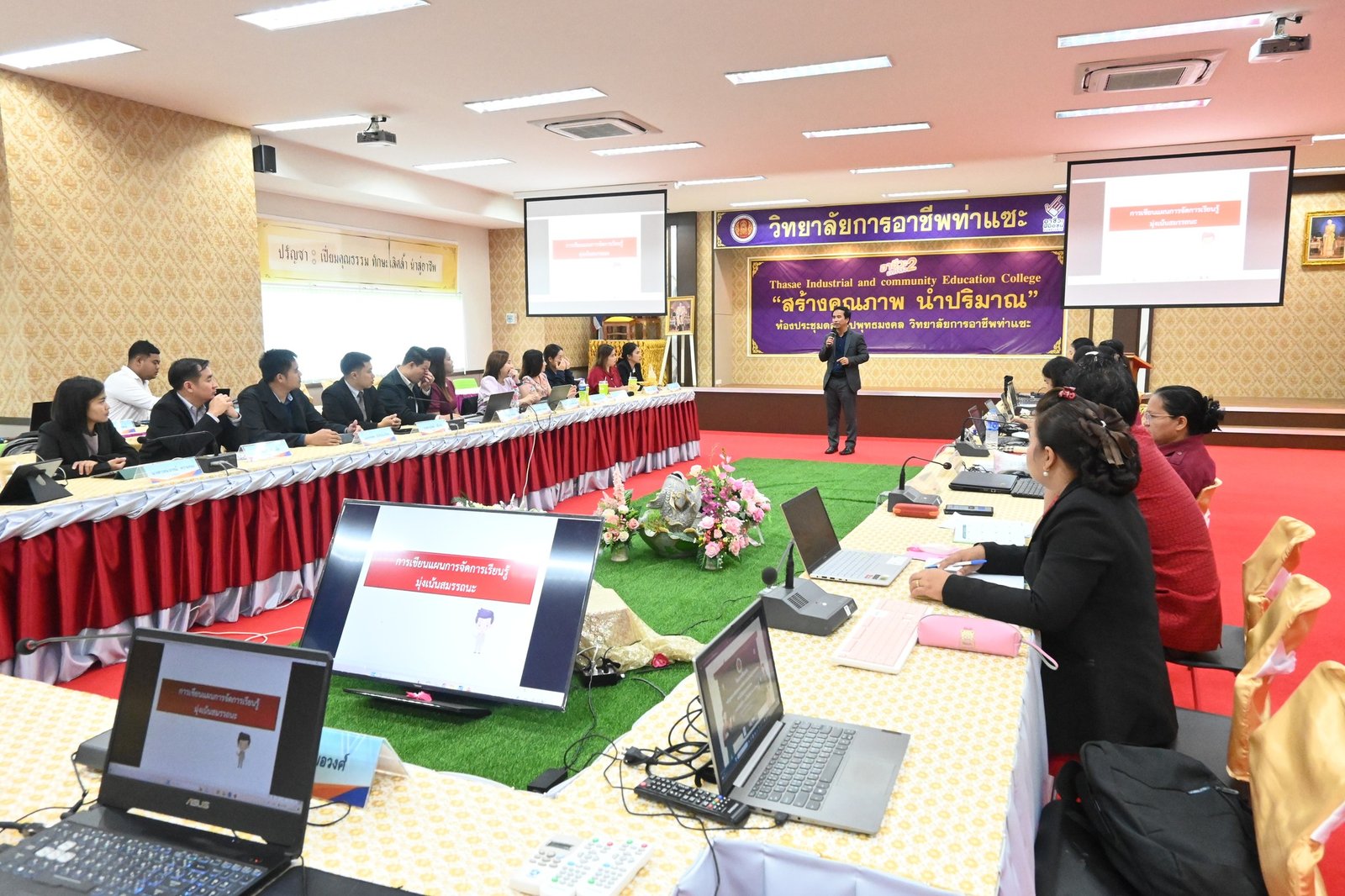 วันที่ 21-22 กันยายน 2566 นางบัณฑิตา ทวีเมือง ผู้อำนวยการวิทยาลัยการอาชีพท่าแซะ พร้อมรองผู้อำนวยการ คณะครู และบุคลากรทางการศึกษา เข้าร่วมโครงการฝึกอบรมหลักสูตรเขียนแผนจัดการเรียนรู้แบบฐานสมรรถนะ ประจำปีงบประมาณ 2566 :: วิทยาลัยการอาชีพท่าแซะ