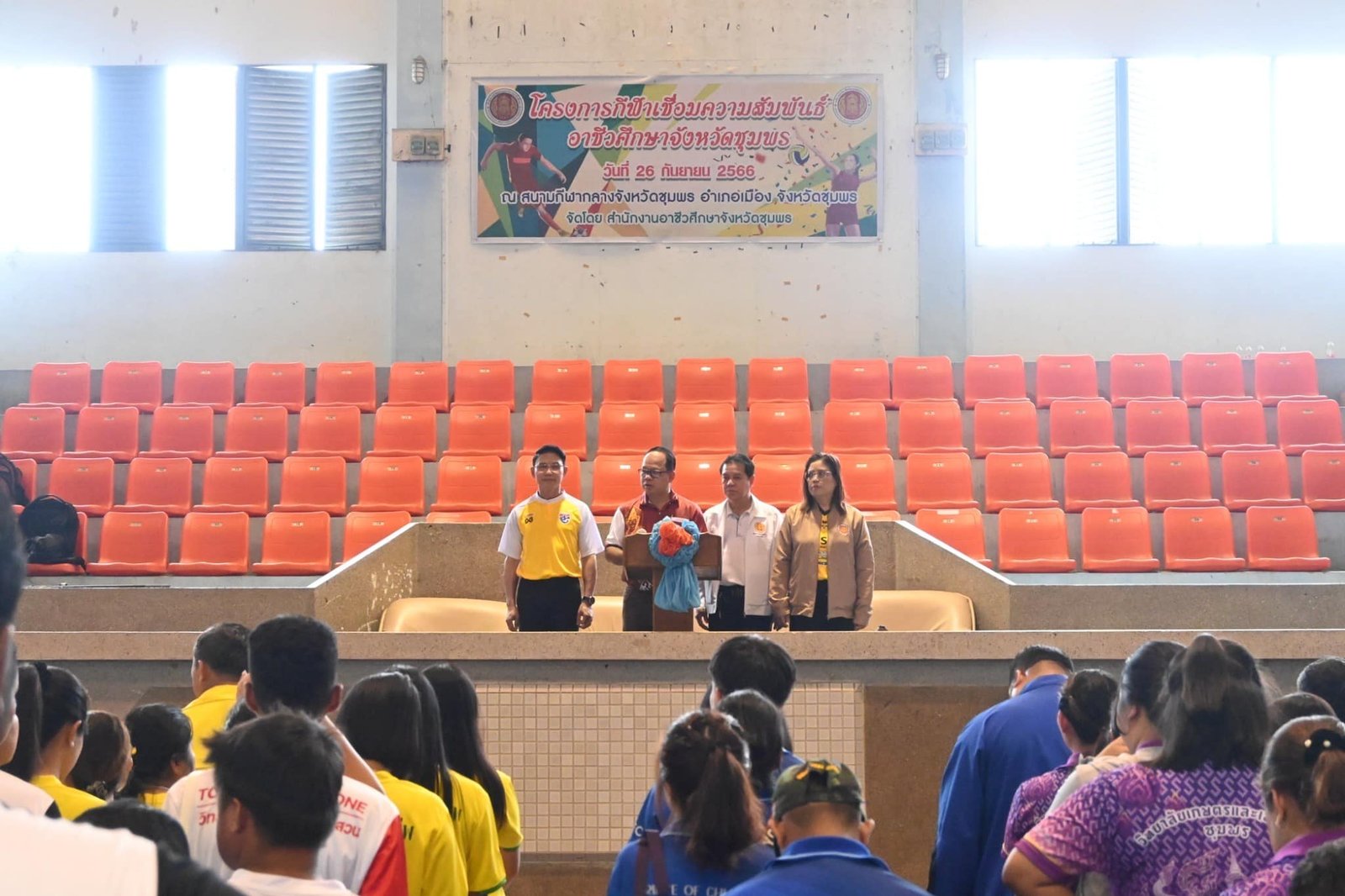 วันที่ 25 กันยายน 2566 นางบัณฑิตา ทวีเมือง พร้อมด้วยคณะครู และบุคลากรทางการศึกษา เข้าร่วมโครงการกีฬาเชื่อมความสัมพันธ์ อาชีวศึกษาจังหวัดชุมพร :: วิทยาลัยการอาชีพท่าแซะ