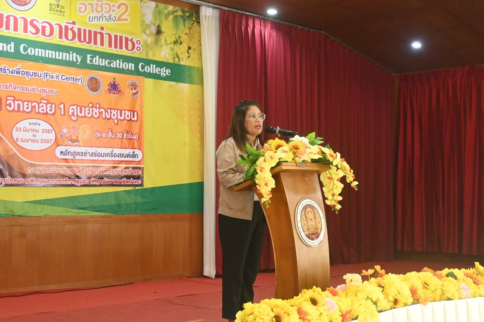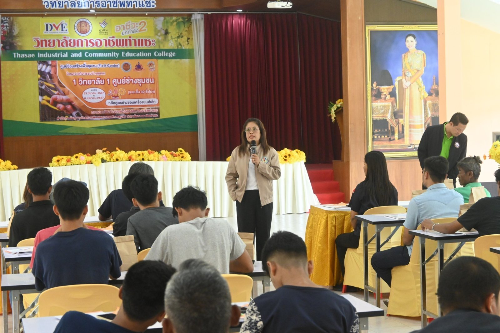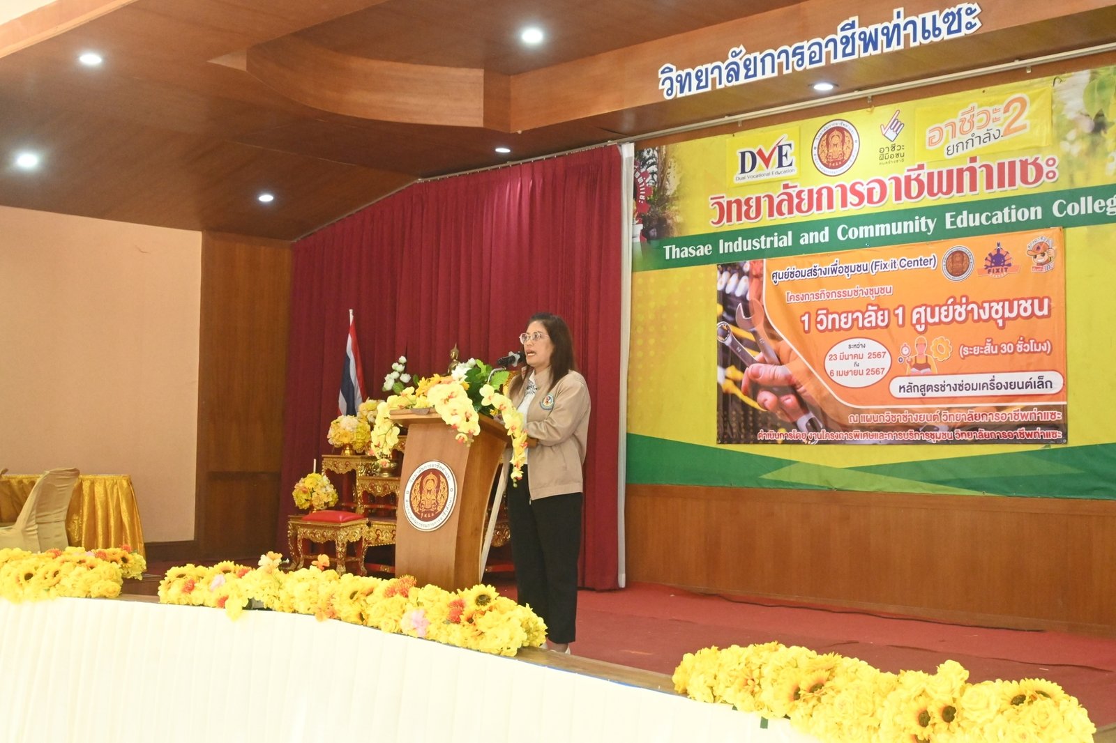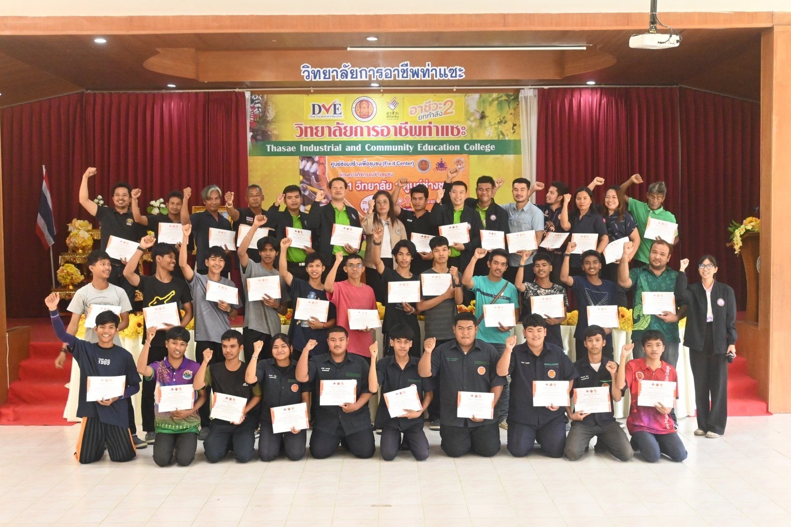 วันที่ 6 เมษายน 2567 นางบัณฑิตา ทวีเมือง ผู้อำนวยการวิทยาลัยการอาชีพท่าแซะ เป็นประธานมอบเกียรติบัตรให้แก่วิทยากร และผู้ผ่านการอบรมในหลักสูตรช่างซ่อมเครื่องยนต์เล็ก ภายใต้โครงการกิจกรรมช่างชุมชน 1 วิทยาลัย 1 ศูนย์ช่างชุมชน ระหว่างวันที่ 23 มีนาคม 2567 ถึง :: วิทยาลัยการอาชีพท่าแซะ