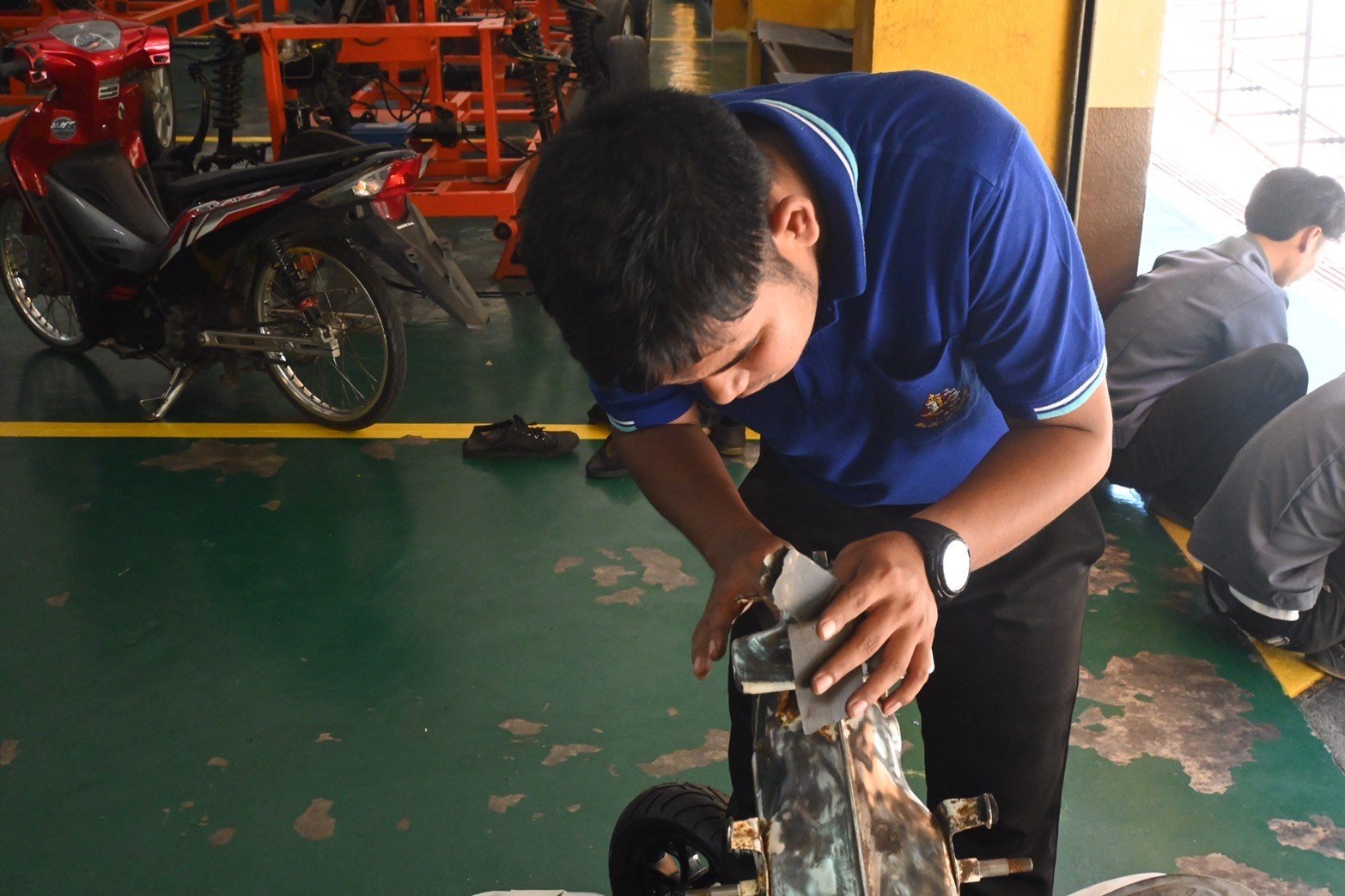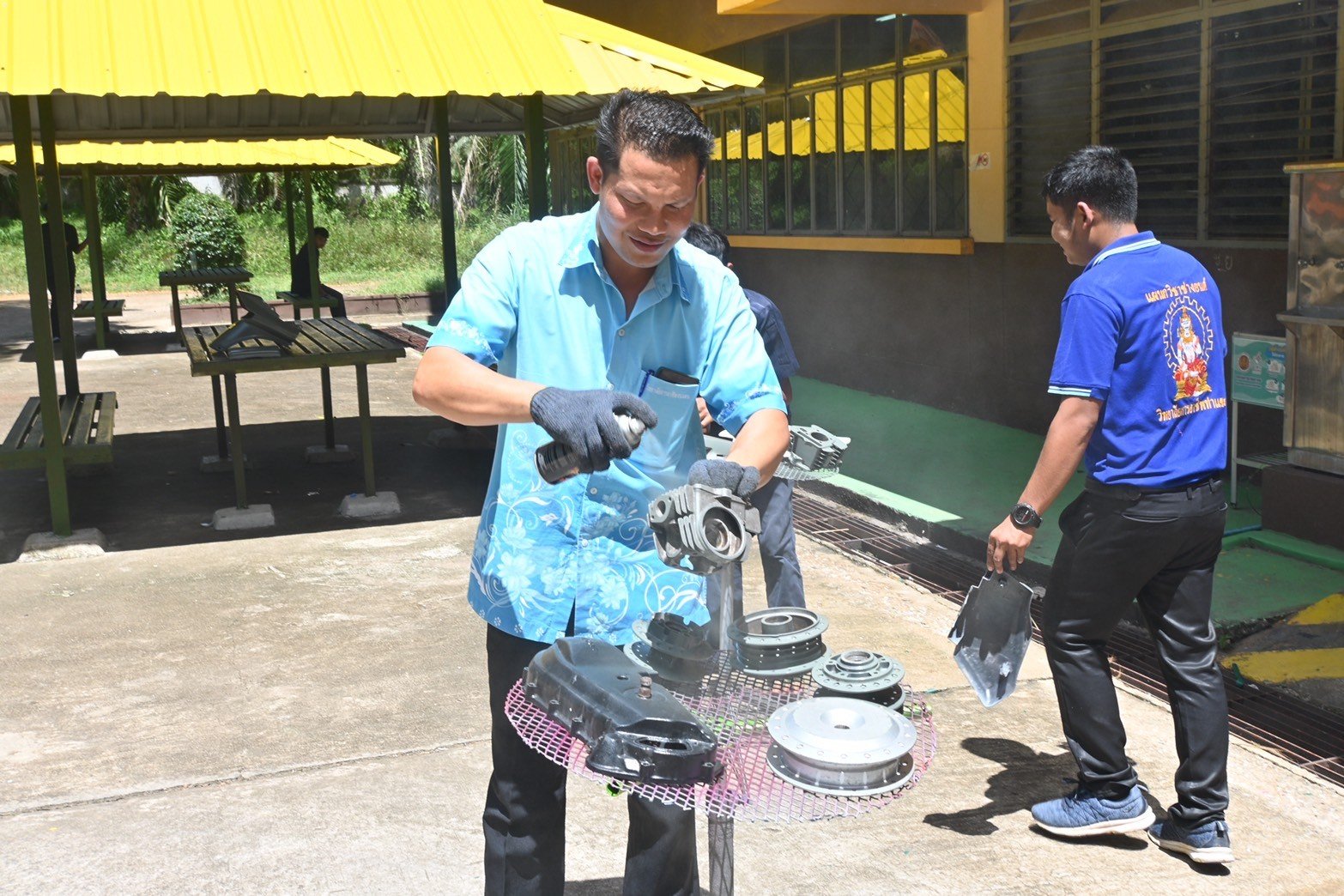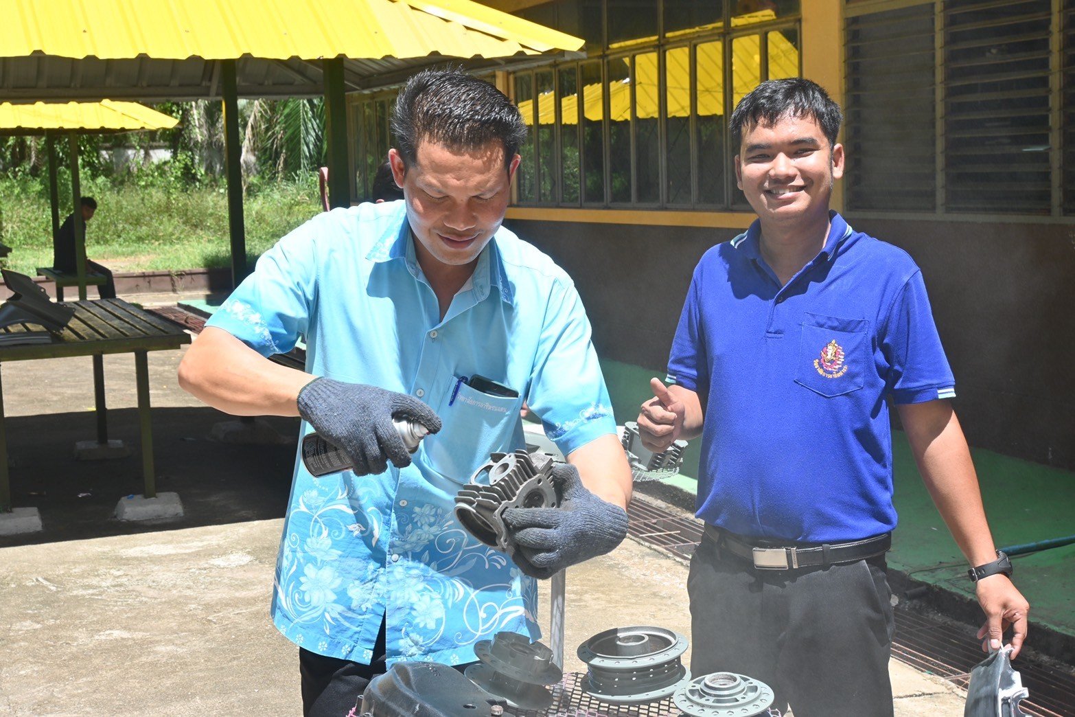 วันที่ 16 สิงหาคม 2567 นางบัณฑิตา ทวีเมือง ผู้อำนวยการวิทยาลัยการอาชีพท่าแซะ พร้อมด้วยครู เยี่ยมชมการฝึกอบรมทักษะในหลักสูตรการทำสีชิ้นส่วนมอเตอร์ไซค์ โดยใช้ฟิล์มลอยน้ำเคลือบและใช้สีจริงพ่นชิ้นส่วนยานยนต์ จากบริษัท เดี้ยนซ์ มาร์เก็ตติ้ง จำกัด ให้กับนักเรีย :: วิทยาลัยการอาชีพท่าแซะ