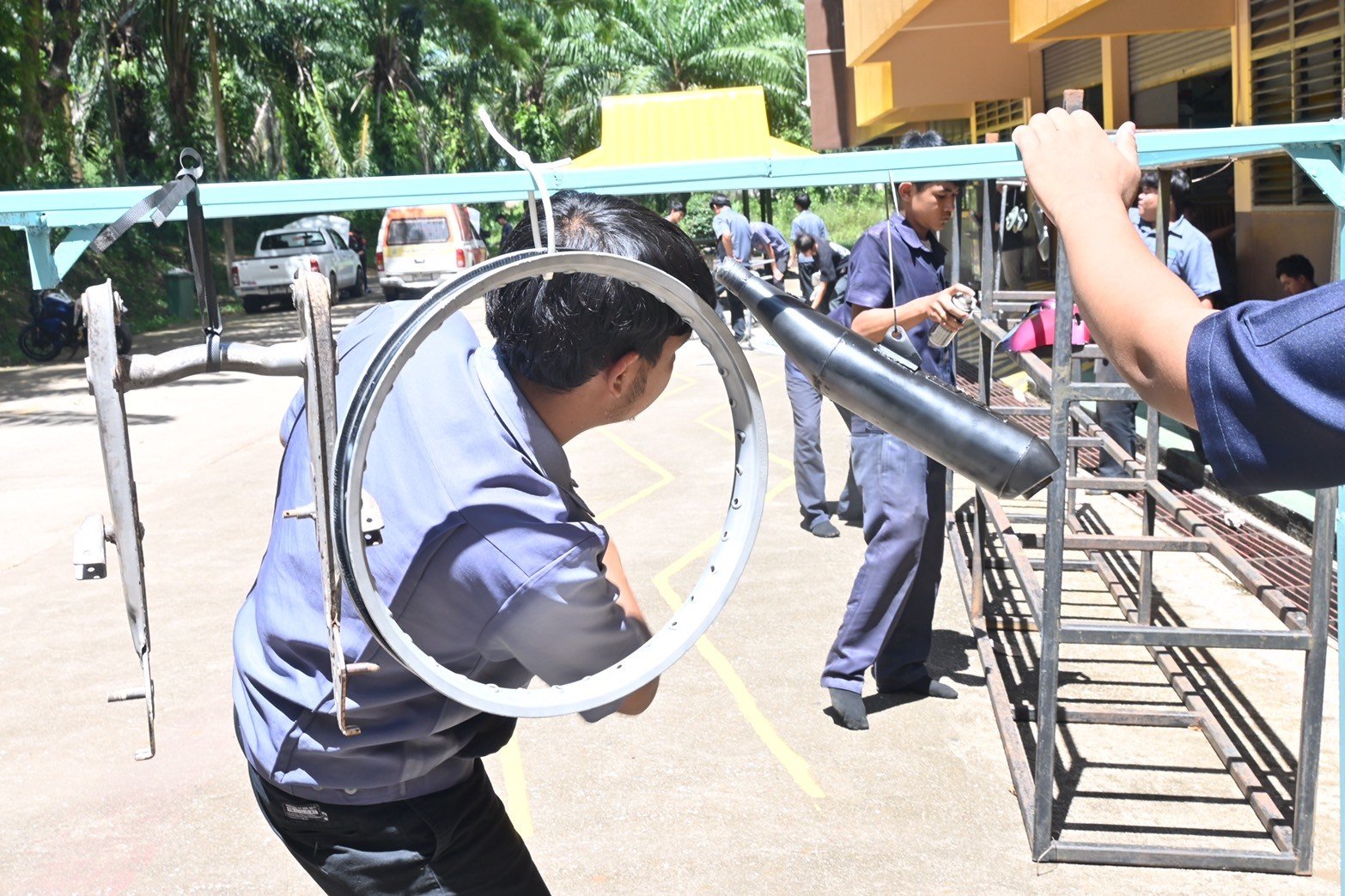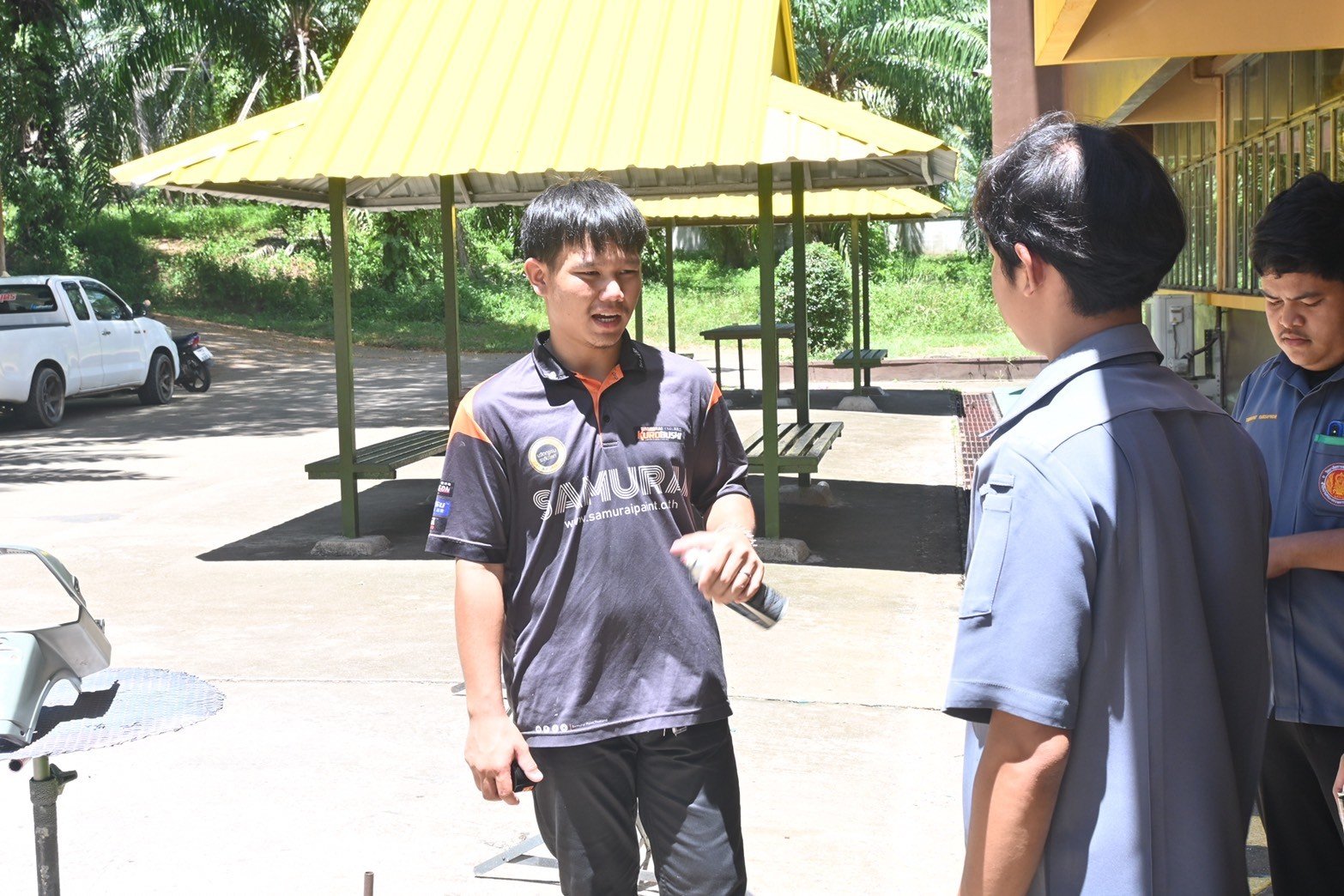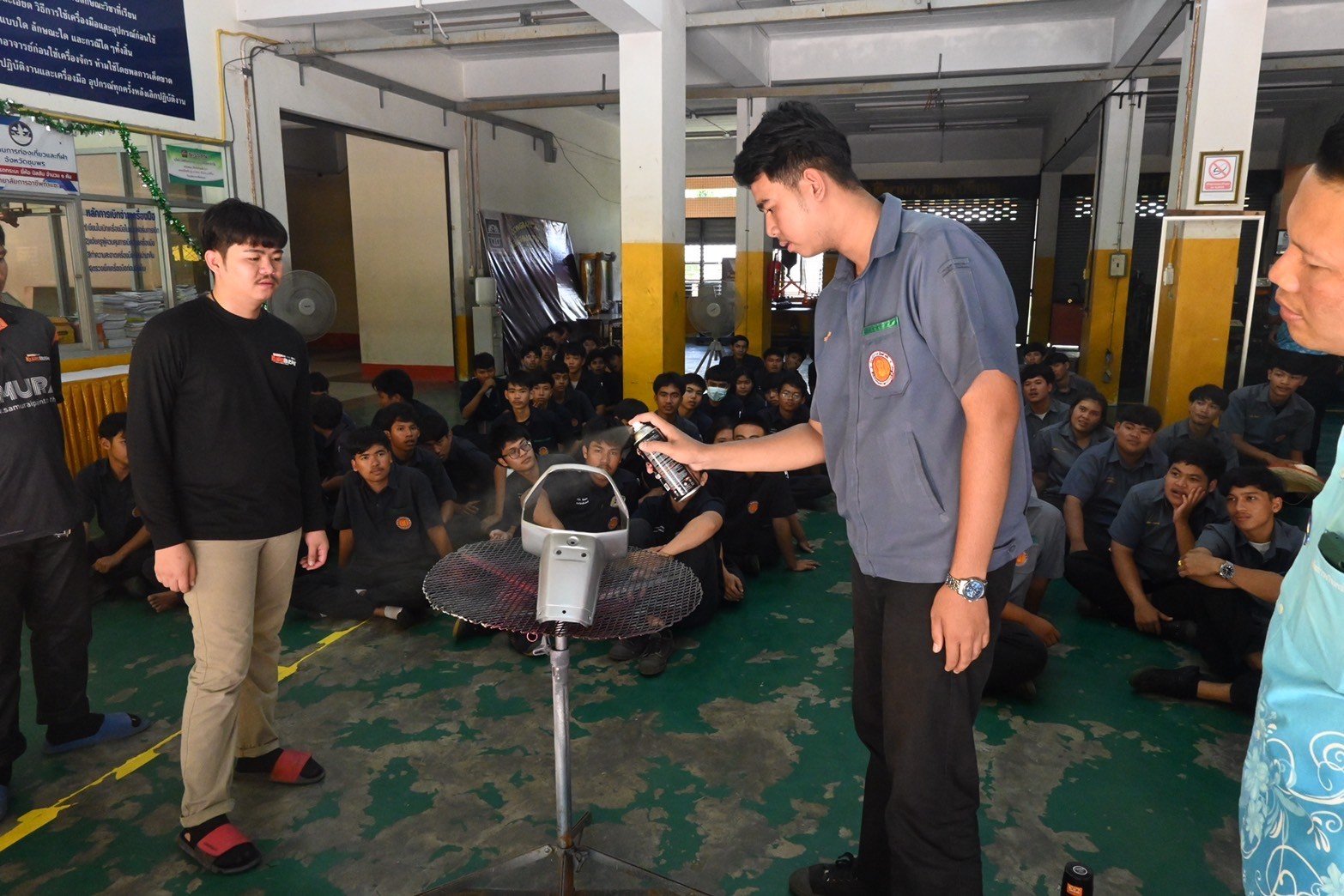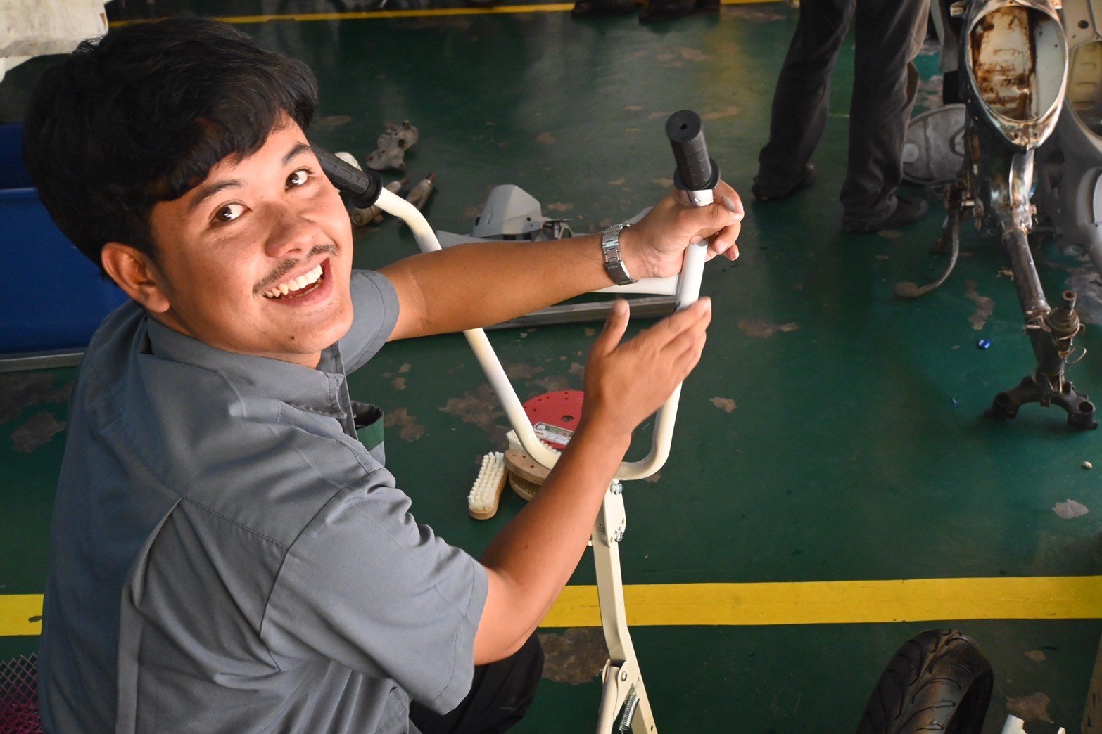 วันที่ 16 สิงหาคม 2567 นางบัณฑิตา ทวีเมือง ผู้อำนวยการวิทยาลัยการอาชีพท่าแซะ พร้อมด้วยครู เยี่ยมชมการฝึกอบรมทักษะในหลักสูตรการทำสีชิ้นส่วนมอเตอร์ไซค์ โดยใช้ฟิล์มลอยน้ำเคลือบและใช้สีจริงพ่นชิ้นส่วนยานยนต์ จากบริษัท เดี้ยนซ์ มาร์เก็ตติ้ง จำกัด ให้กับนักเรีย :: วิทยาลัยการอาชีพท่าแซะ