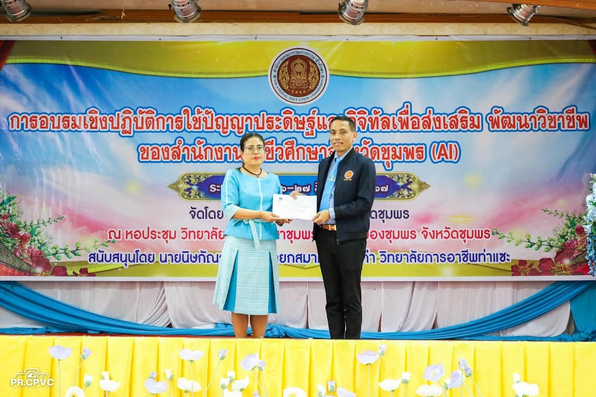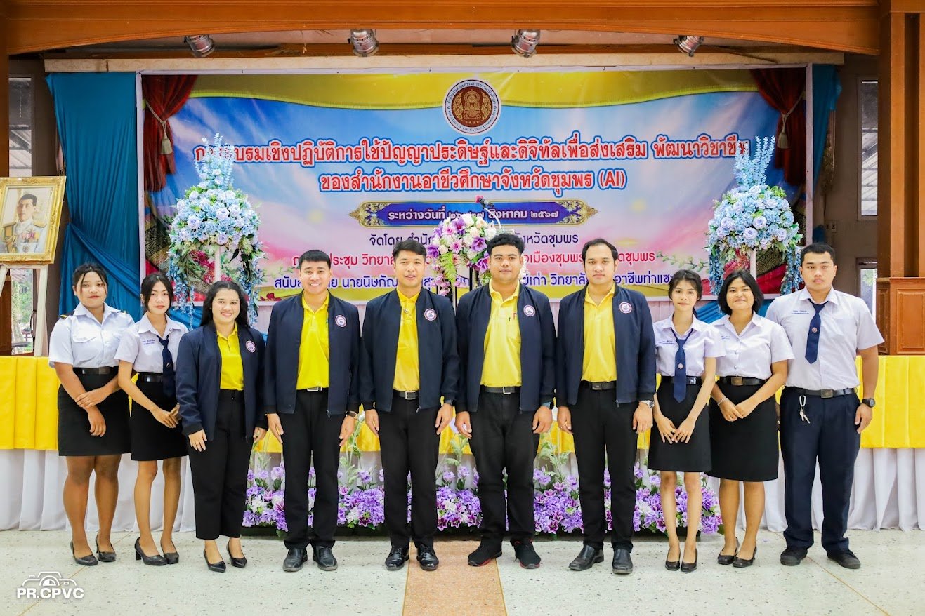 วันที่ 26-27 สิงหาคม 2567 นางบัณฑิตา ทวีเมือง ผู้อำนวยการวิทยาลัยการอาชีพท่าแซะ พร้อมด้วยคณะครูและตัวแทนนักเรียน นักศึกษาวิทยาลัยการอาชีพท่าแซะ เข้าร่วมโครงการอบรมเชิงปฏิบัติการใช้ปัญญาประดิษฐ์และดิจิทัลเพื่อส่งเสริม พัฒนาวิชาชีพ ของสำนักงานอาชีวศึกษาจัง :: วิทยาลัยการอาชีพท่าแซะ