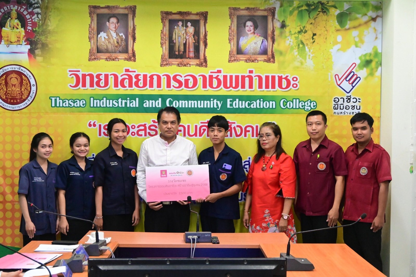 วันที่ 30 กรกฎาคม 2568 นางบัณฑิตา ทวีเมือง ผู้อำนวยการวิทยาลัยการอาชีพท่าแซะ พร้อมด้วยคณะผู้บริหาร รับมอบทุนการศึกษานักเรียน นักศึกษา ขาดแคลนทุนทรัพย์ จากคุณนิษก..