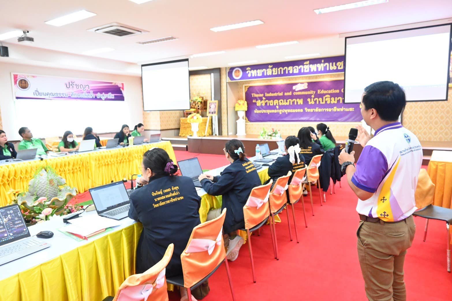 วันที่ 22-23 พฤศจิกายน 2567 นางบัณฑิตา ทวีเมือง ผู้อำนวยการวิทยาลัยการอาชีพท่าแซะ พร้อมด้วยคณะครู เข้าร่วมโครงการฝึกอบรมเชิงปฏิบัติการการเขียนแผนการจัดการเรียนรู้มุ่งสมรรถนะ (ภายใต้โครงการพัฒนาครูและบุคลากรอาชีวศึกษา) ประจำปีงบประมาณ 2567 โดยมีนายวิษนุ ส :: วิทยาลัยการอาชีพท่าแซะ