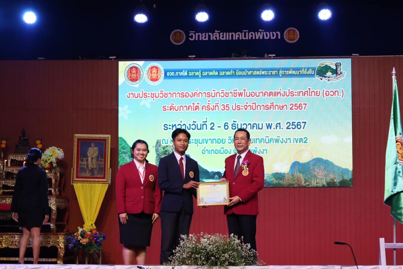วันที่ 4 ธันวาคม 2567 นางบัณฑิตา ทวีเมือง ผู้อำนวยการวิทยาลัยการอาชีพท่าแซะ พร้อมด้วยครูที่ปรึกษา อวท. และนักเรียน นักศึกษา เข้าร่วมพิธีเปิดการประชุมวิชาการองค์การนักวิชาชีพในอนาคตแห่งประเทศไทย (อวท.) ระดับภาค ภาคใต้ ครั้งที่ 35 ประจำปีการศึกษา 2567 และ :: วิทยาลัยการอาชีพท่าแซะ