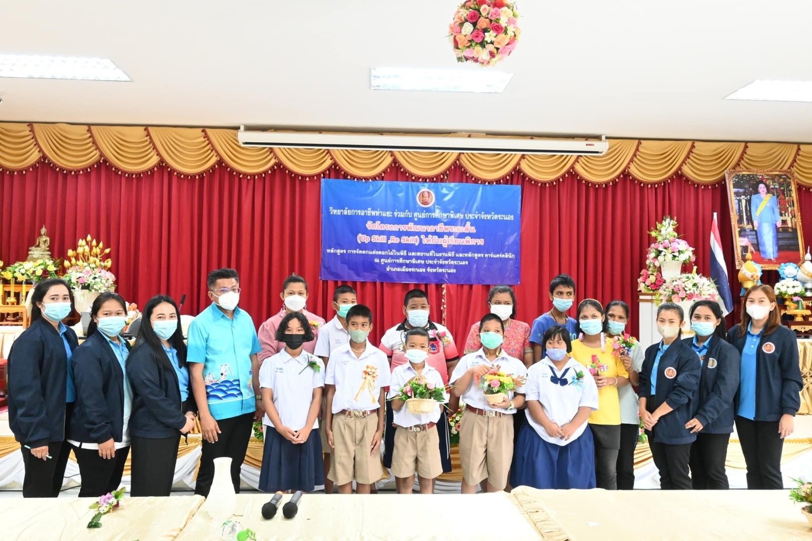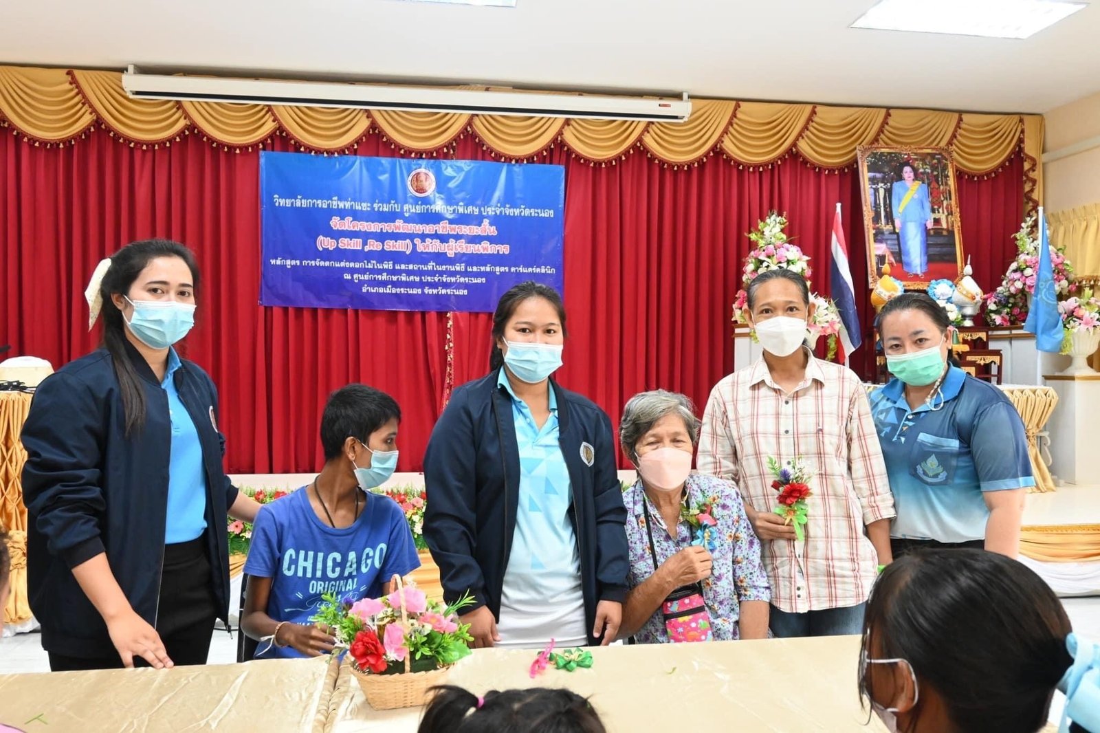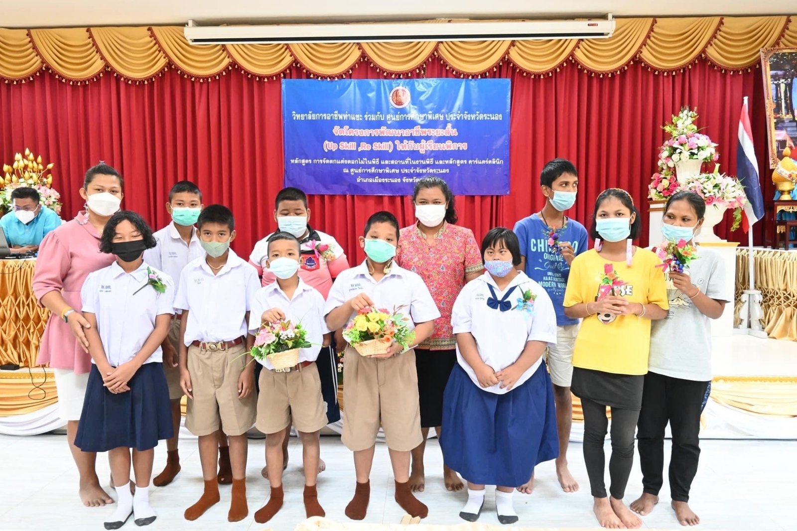 ร่วมดำเนินโครงการพัฒนาอาชีพระยะสั้น(Up Skill, Re Skill) ให้กับผู้เรียนพิการ หลักสูตร การจัดตกแต่งดอกไม้ในพิธี และสถานที่ในงานพิธี และหลักสูตร คาร์แคร์คลินิก ณ ศูนย์การศึกษาพิเศษ ประจำจังหวัดระนอง อำเภอเมืองระนอง จังหวัดระนอง :: วิทยาลัยการอาชีพท่าแซะ