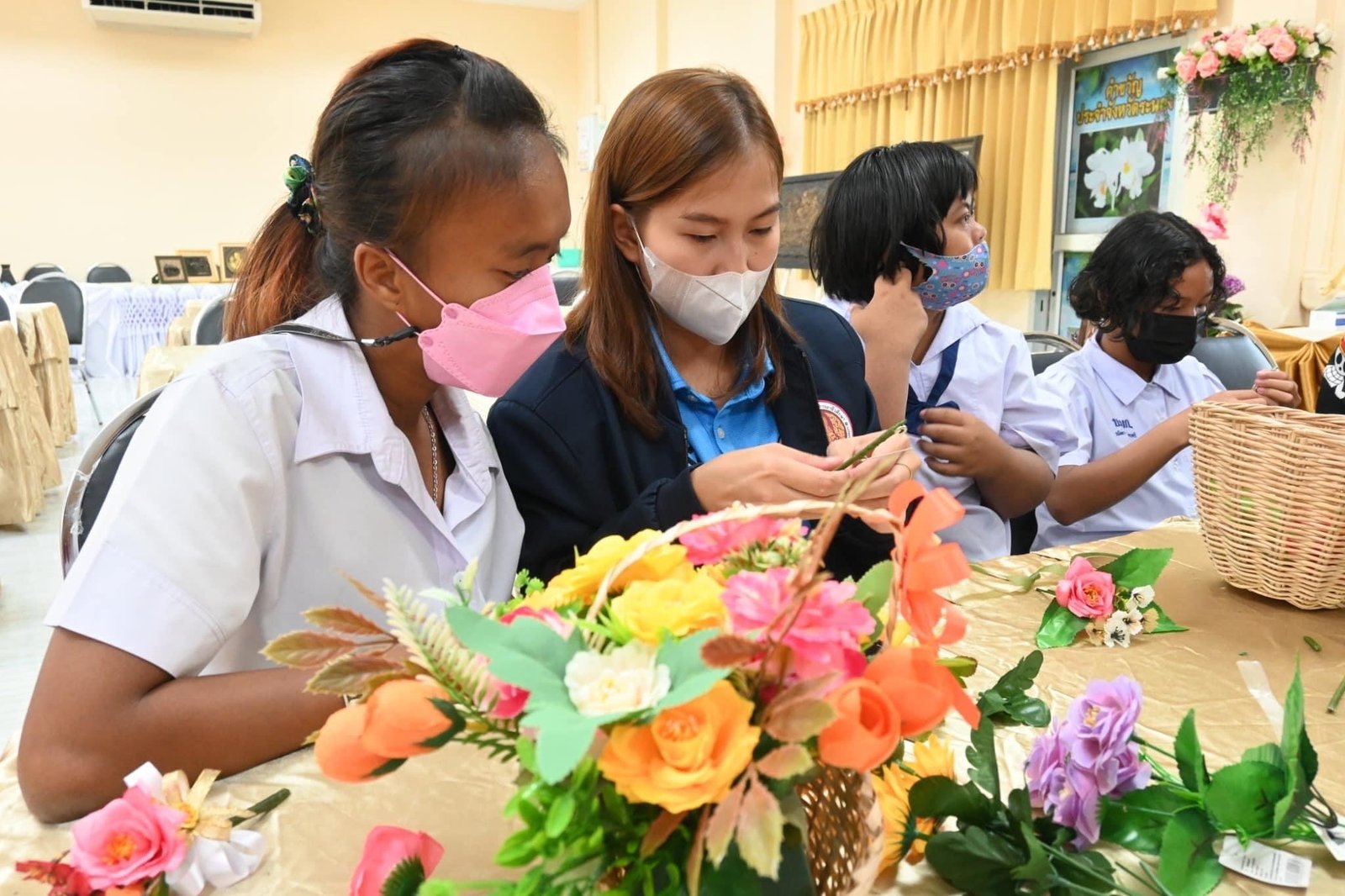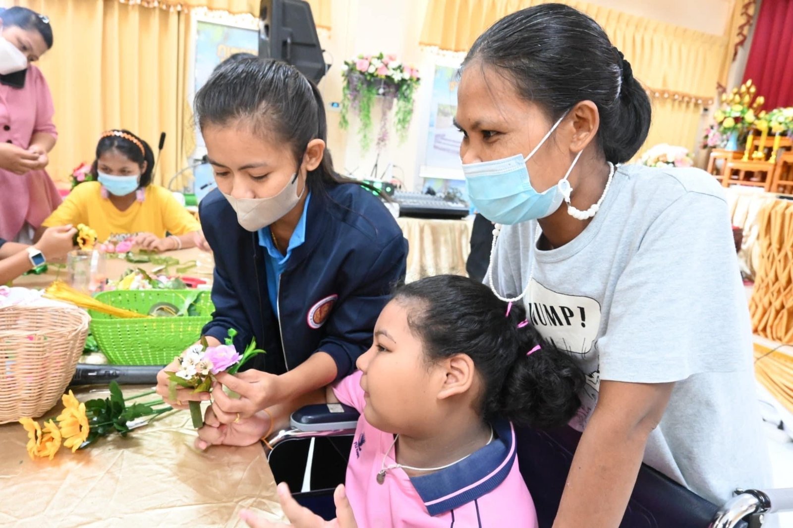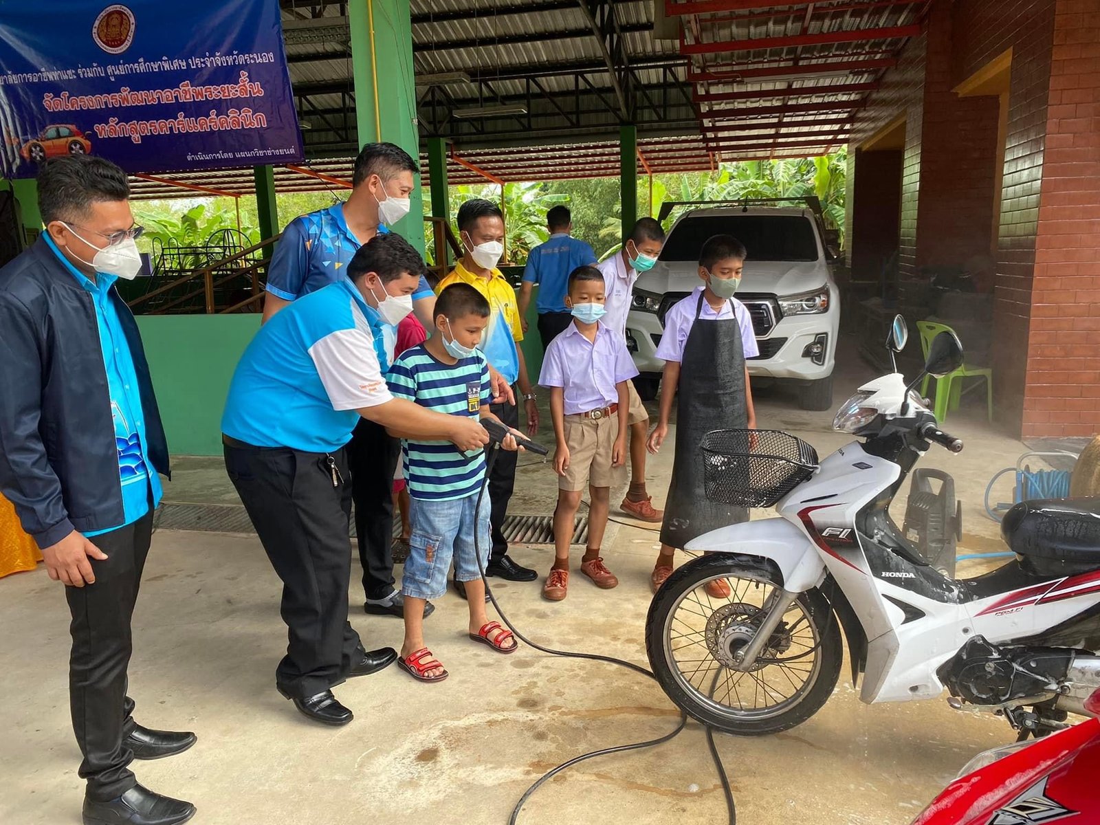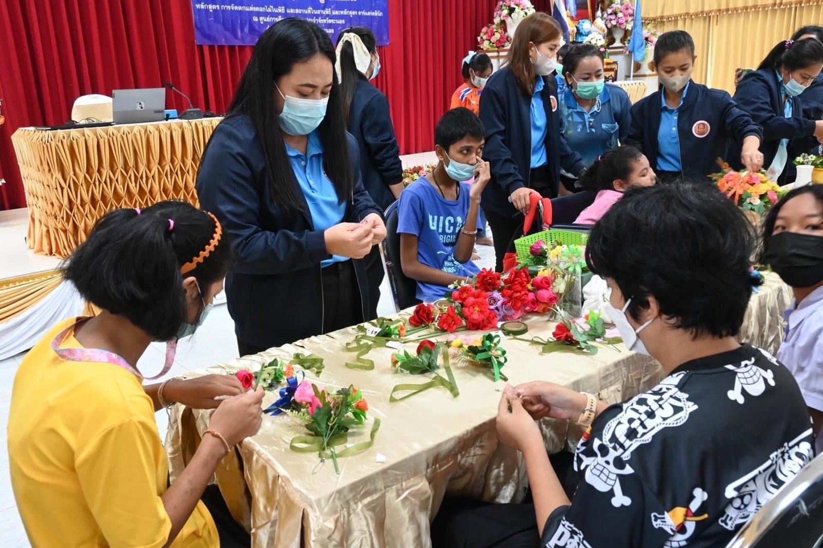 ร่วมดำเนินโครงการพัฒนาอาชีพระยะสั้น(Up Skill, Re Skill) ให้กับผู้เรียนพิการ หลักสูตร การจัดตกแต่งดอกไม้ในพิธี และสถานที่ในงานพิธี และหลักสูตร คาร์แคร์คลินิก ณ ศูนย์การศึกษาพิเศษ ประจำจังหวัดระนอง อำเภอเมืองระนอง จังหวัดระนอง :: วิทยาลัยการอาชีพท่าแซะ
