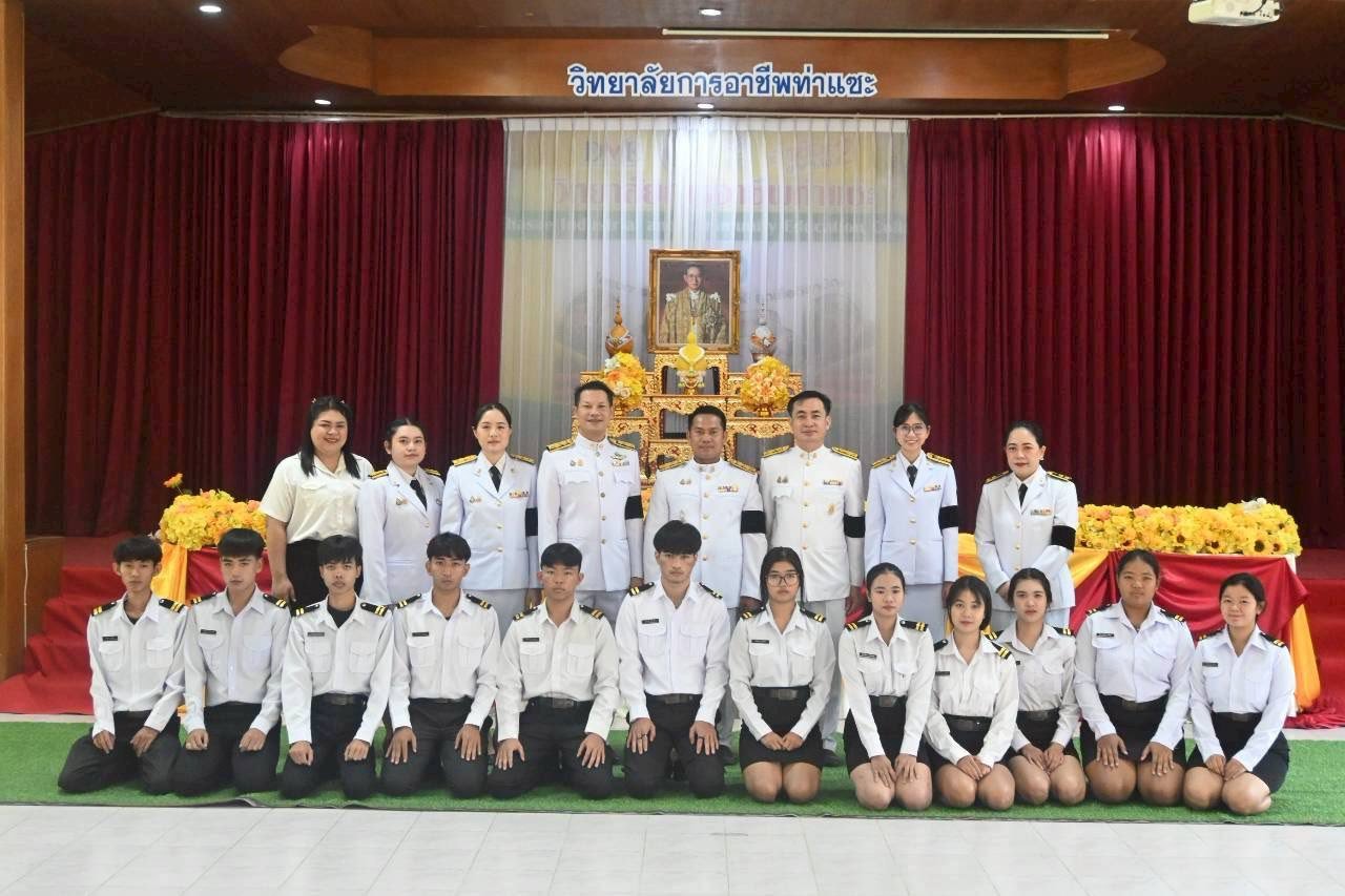 วันที่ 4 ธันวาคม 2568 นายชนาธิวัฒน์ ซารัมย์ รองผู้อำนวยการฯ รักษาการในตำแหน่ง ผู้อำนวยการวิทยาลัยการอาชีพท่าแซะ พร้อมด้วยคณะครู บุคลากรทางการศึกษาและนักเรียน นักศึกษา เข้าร่วมกิจกรรมเนื่องในวันคล้ายวันพระบรมราชสมภพ พระบาทสมเด็จพระบรมชนกาธิเบศร มหา :: วิทยาลัยการอาชีพท่าแซะ