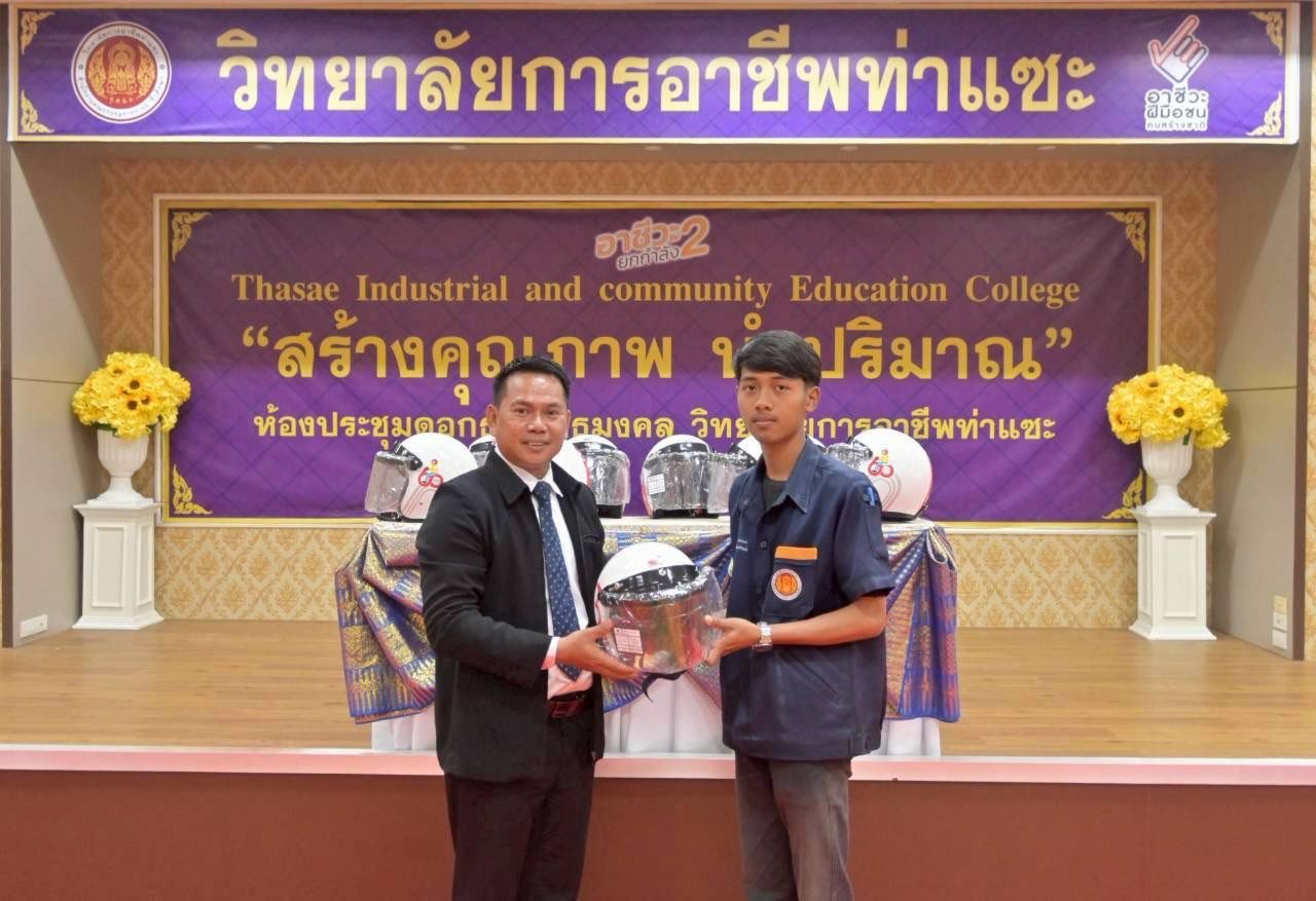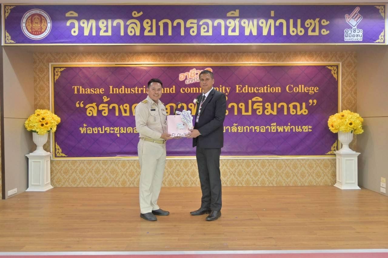 วันที่ 9 ธันวาคม 2568 นายชนาธิวัฒน์ ซารัมย์ รองผู้อำนวยการฯ รักษาในตำแหน่ง ผู้อำนวยการวิทยาลัยการอาชีพท่าแซะ ร่วมสนับสนุนของรางวัล เพื่อรวมน้ำใจนำไปมอบให้เหล่ากาชาดจังหวัดชุมพร และเป็นของรางวัลร้านกาชาดจังหวัดชุมพร ประจำปี 2568 ณ ที่ว่าการอำเภอท่าแ :: วิทยาลัยการอาชีพท่าแซะ