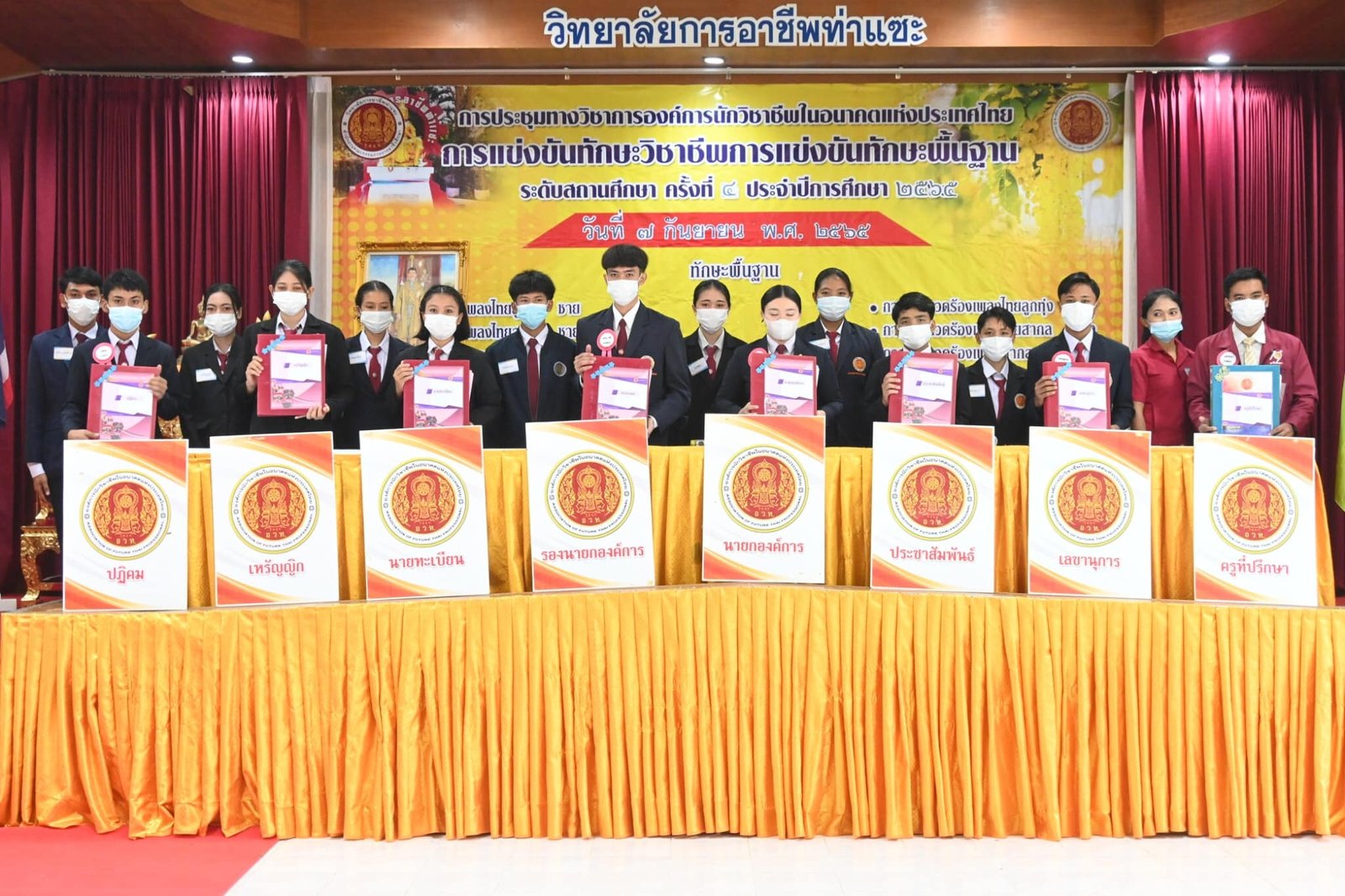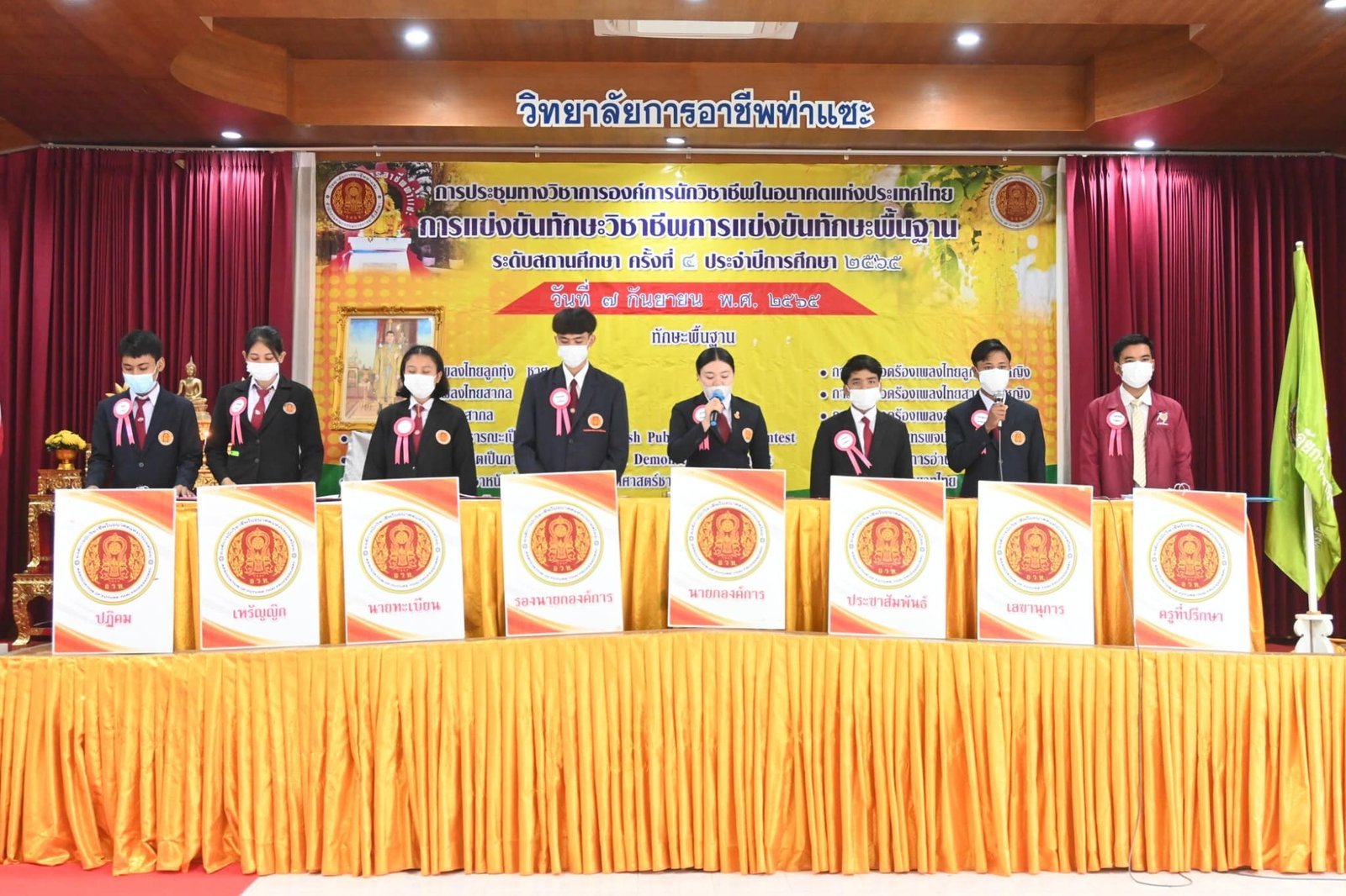 วันที่ 7 กันยายน 2565 นายกิตติศักดิ์ ทรหด รองผู้อำนวยการฯรักษาการในตำแหน่งผู้อำนวยการวิทยาลัยการอาชีพท่าแซะ เป็นประธานในพิธีเปิดโครงการการประชุมทางวิชาการองค์การนักวิชาชีพในอนาคตแห่งประเทศไทย การแข่งขันทักษะวิชาชีพและการแข่งขันทักษะพื้นฐาน ระดับสถานศึกษาค :: วิทยาลัยการอาชีพท่าแซะ