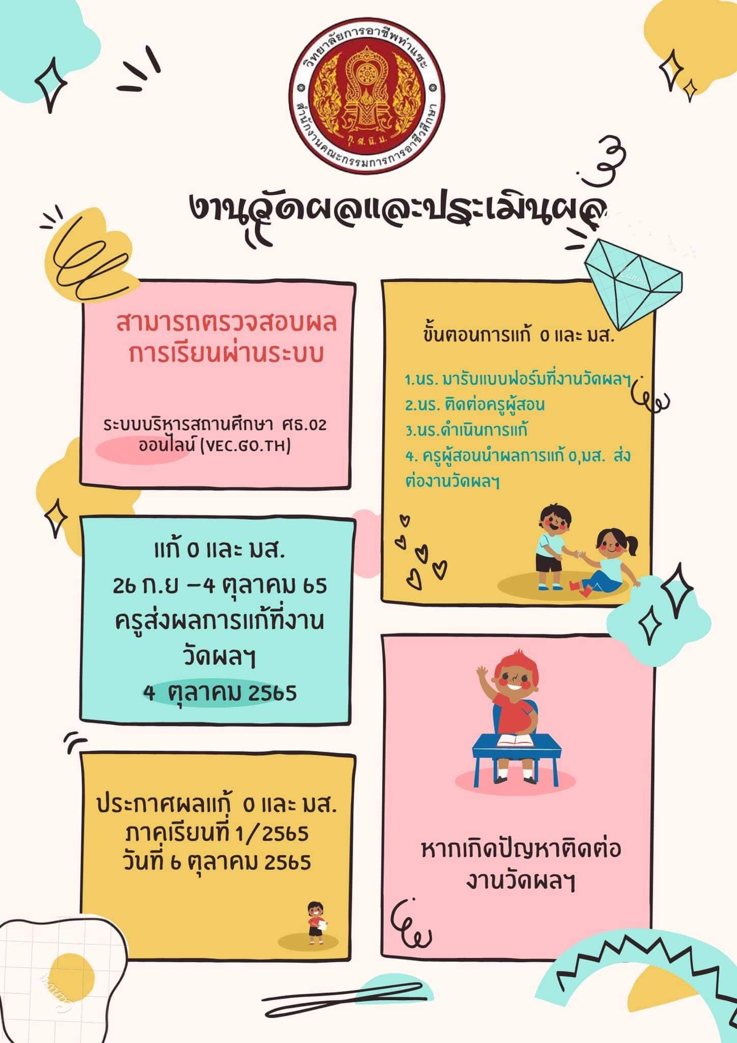 ????วิทยาลัยการอาชีพท่าแซะ #เรื่อง ประกาศผลการเรียนของนักเรียน นักศึกษา ประจำภาคเรียนที่ 1 ปีการศึกษา 2565 :: วิทยาลัยการอาชีพท่าแซะ